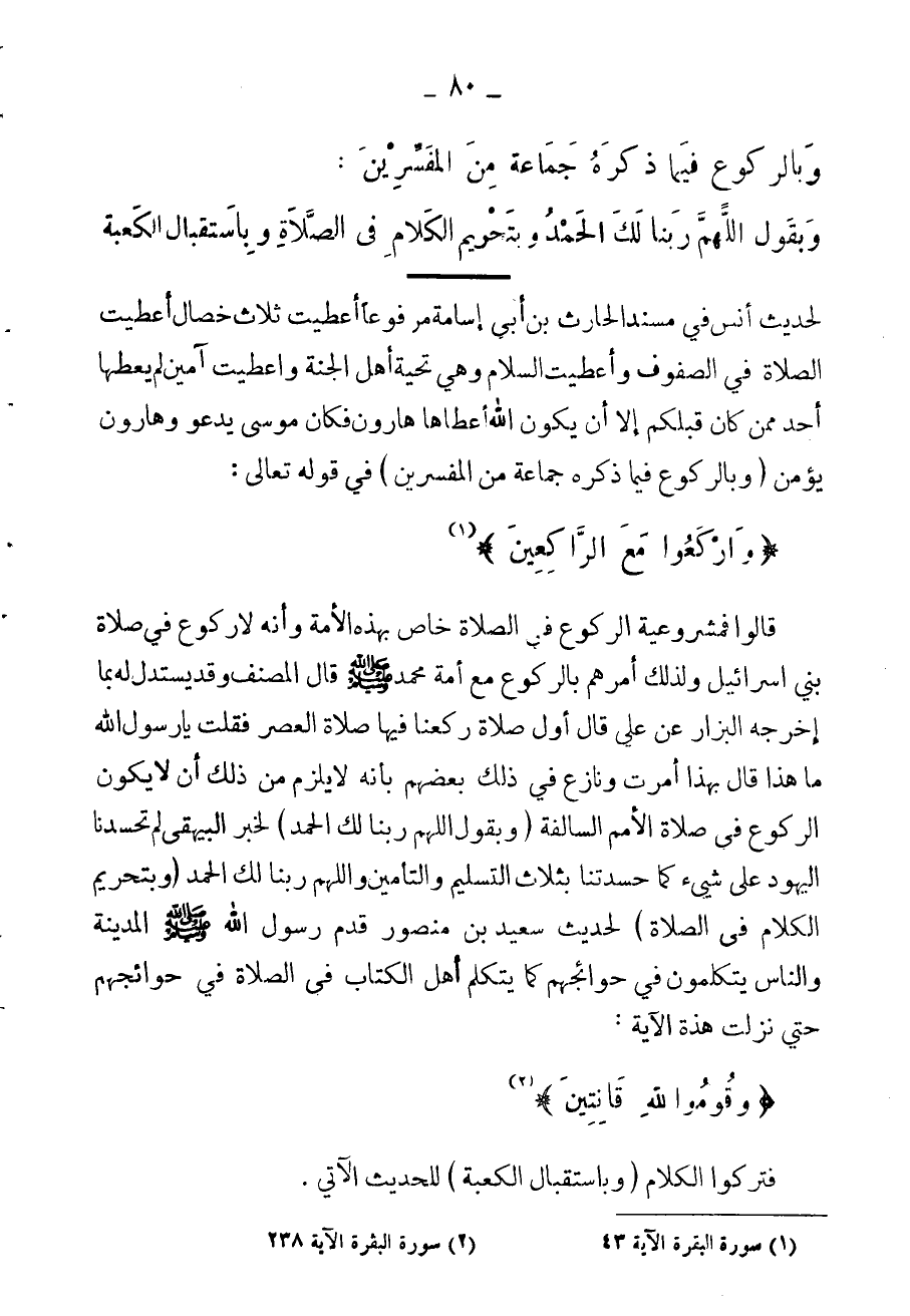 وبقول: اللهم ربنا لك الحمد، وبتحريم الكلام في الصلاة، وباستقبال الكعبة،