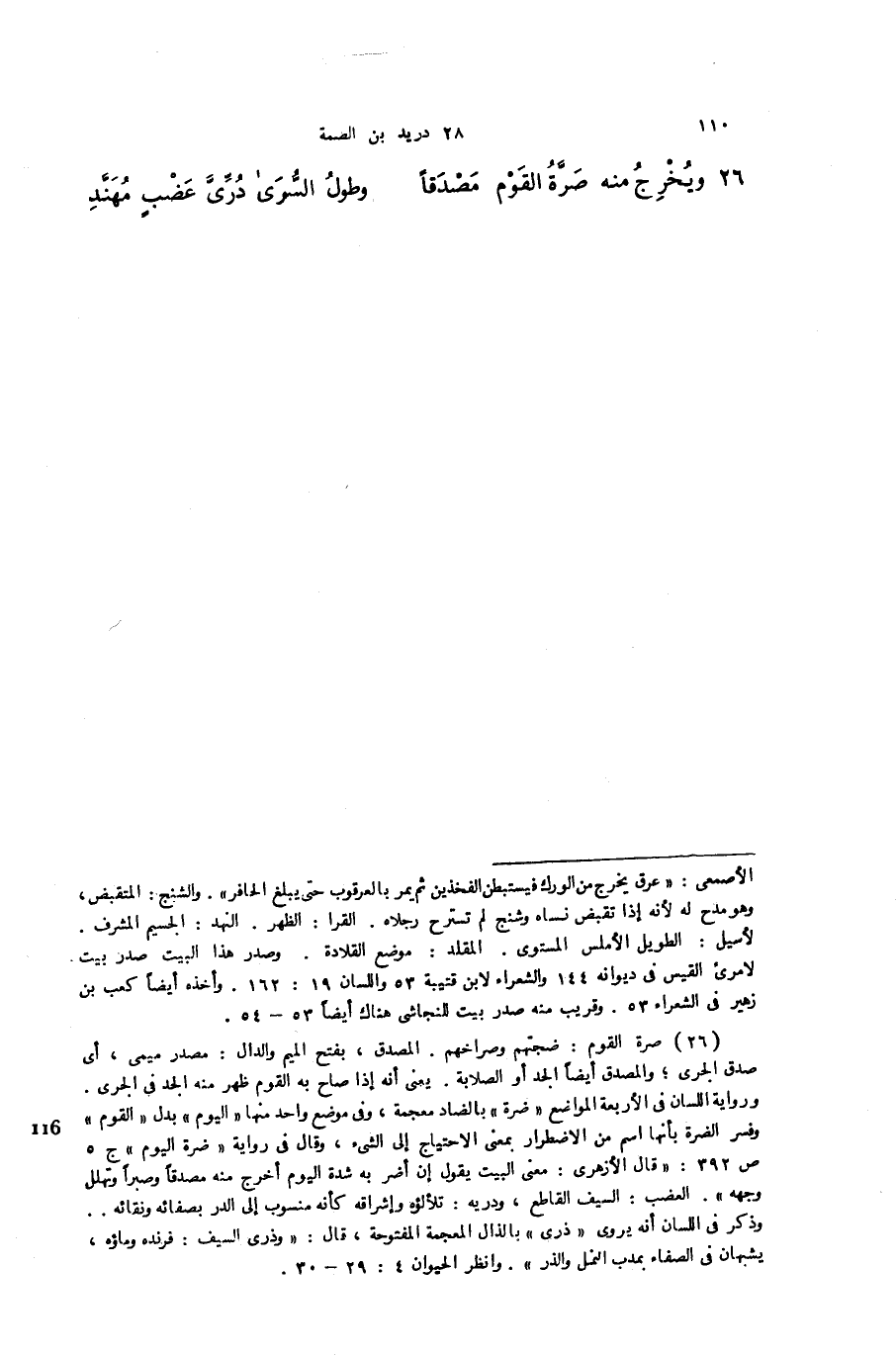 26 - (ويُخرِجُ مِنهُ صرةُ القومِ مِصدَقاً ... وطوُلُ السُرَى درى عضب مهند)