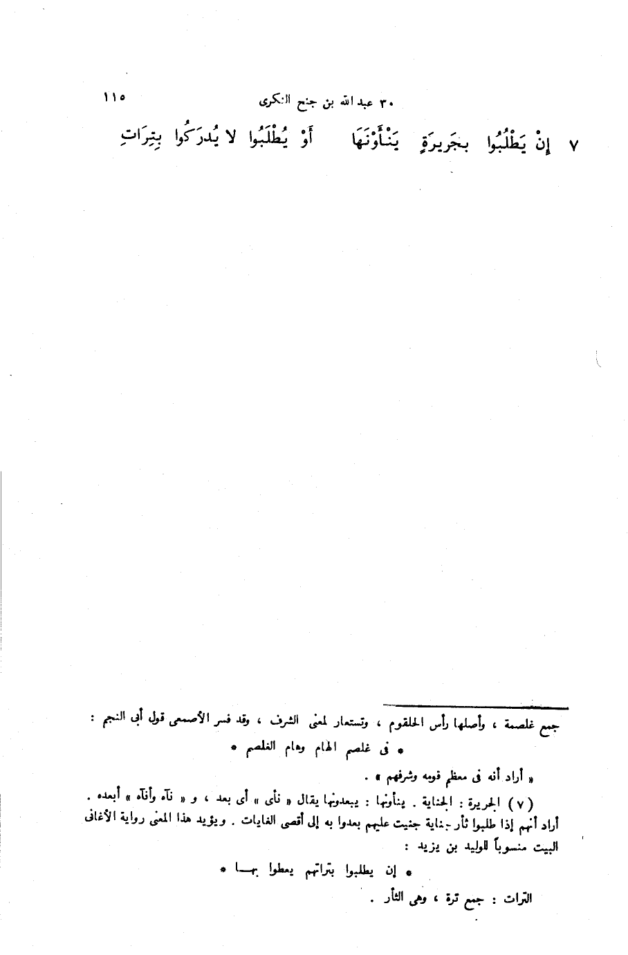 7 - (إنْ يُطلَبُوا بجريرَةٍ يَنأَونَها ... أوْ يُطلبُوا لَا يدركوا بترات)