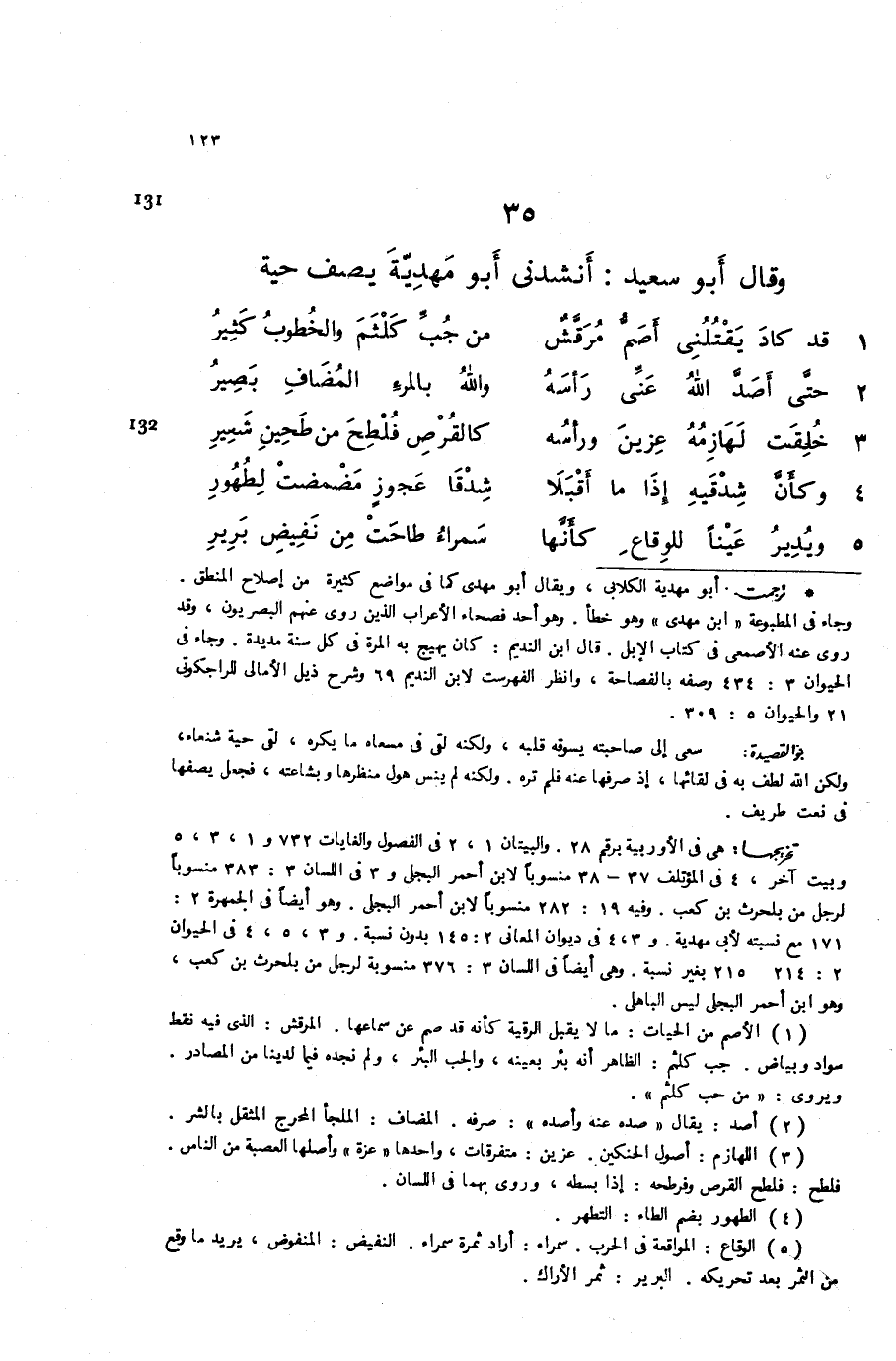 35 - وَقَالَ أَبُو سعيد: أَنْشدني أَبُو مهدية يصف حَيَّة 1