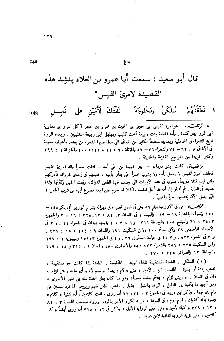 40 - قَالَ أَبُو سعيد: سَمِعت أَبَا عَمْرو بن الْعَلَاء ينشد هَذِه القصيدة لامريء الْقَيْس 1