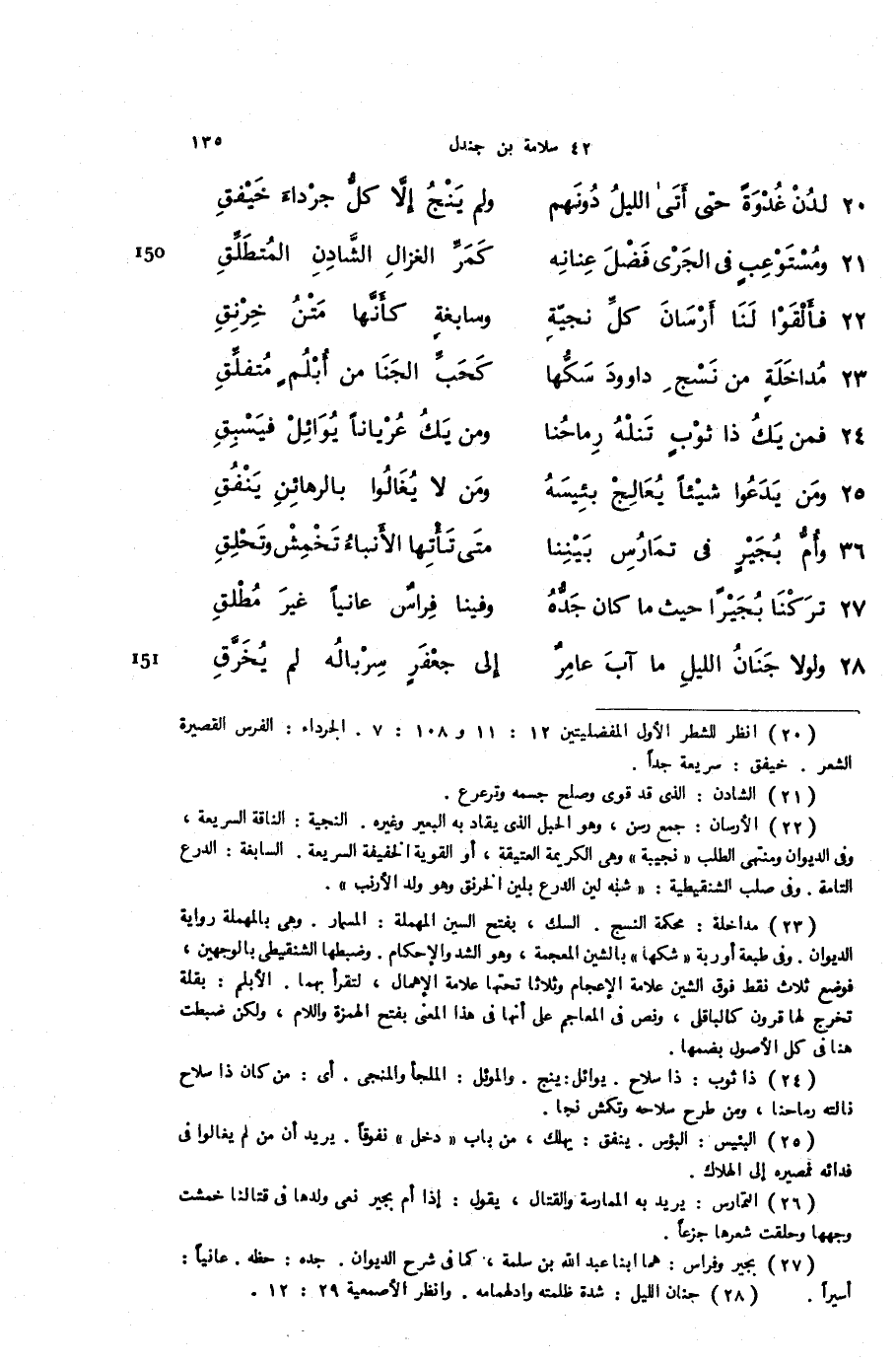 20 - (لدُنْ غُدوةً حتَّى أَتَى الليلُ دونَهُمْ ... ولمْ ينجُ إِلَّا كُلُّ جرداءَ خيفَقِِ)