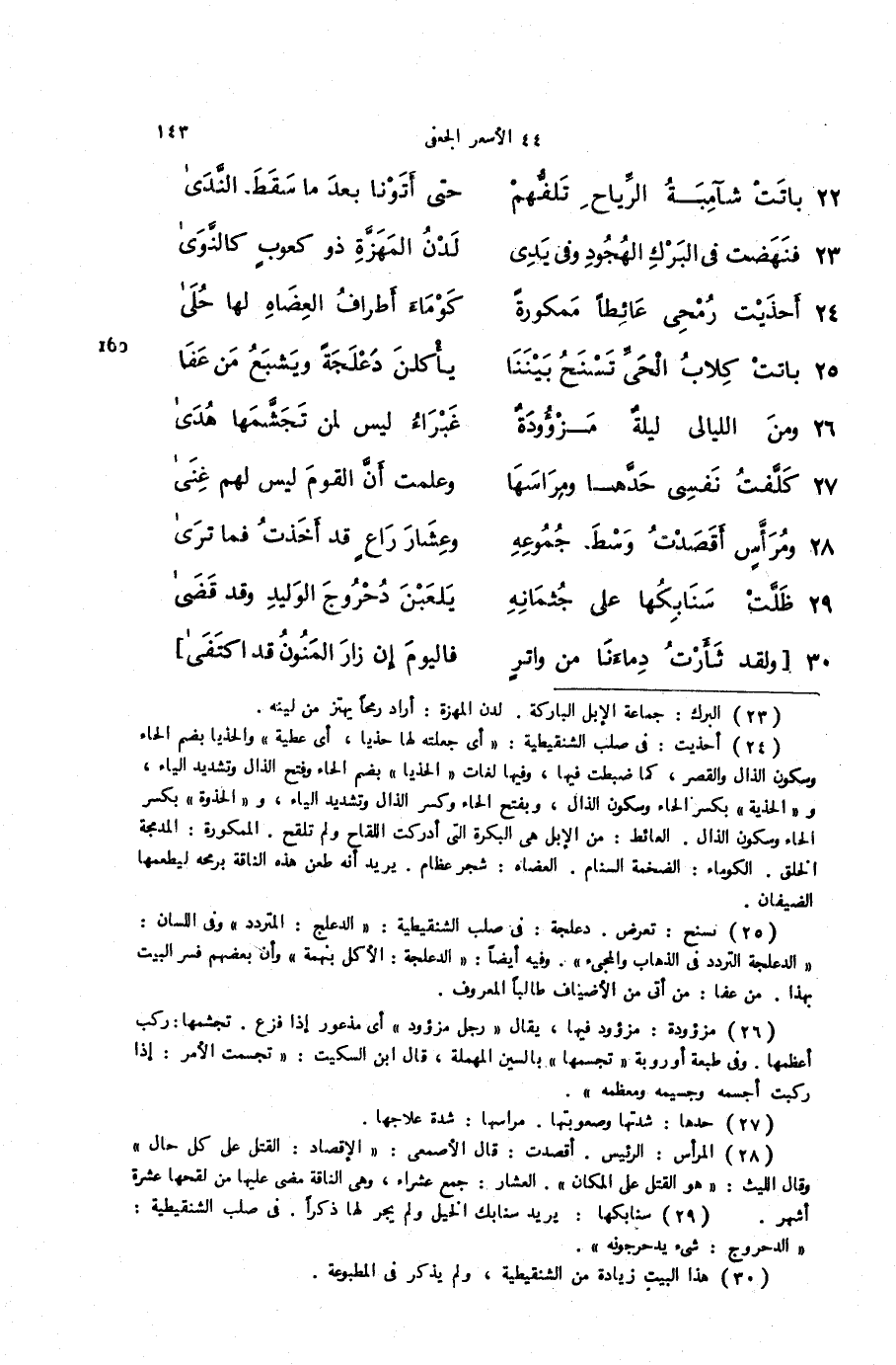 23 - (فَنَهَضْتُ فِي البَرْكِ الهُجُودِ وَفِي يَدي ... لَدْنُ المَهَزَّةِ ذُو كُعُوبٍ كَالنَوَى)