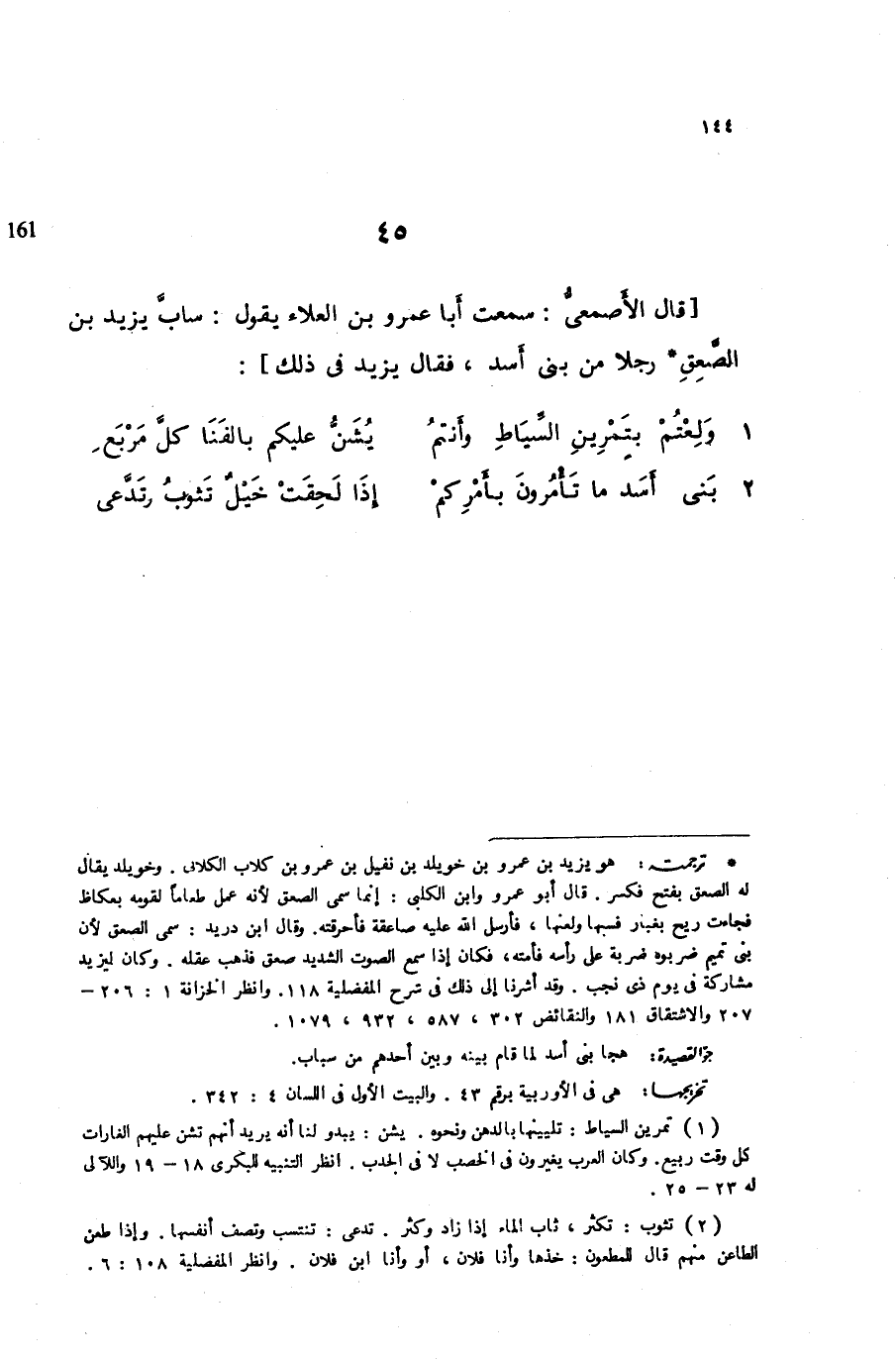 [قَالَ الْأَصْمَعِي: سَمِعت أَبَا عَمْرو بن الْعَلَاء يَقُول: سَاب يزِيد بن الصَّعق رجلا من بني أَسد فَقَالَ يزِيد فِي ذَلِك] : 1