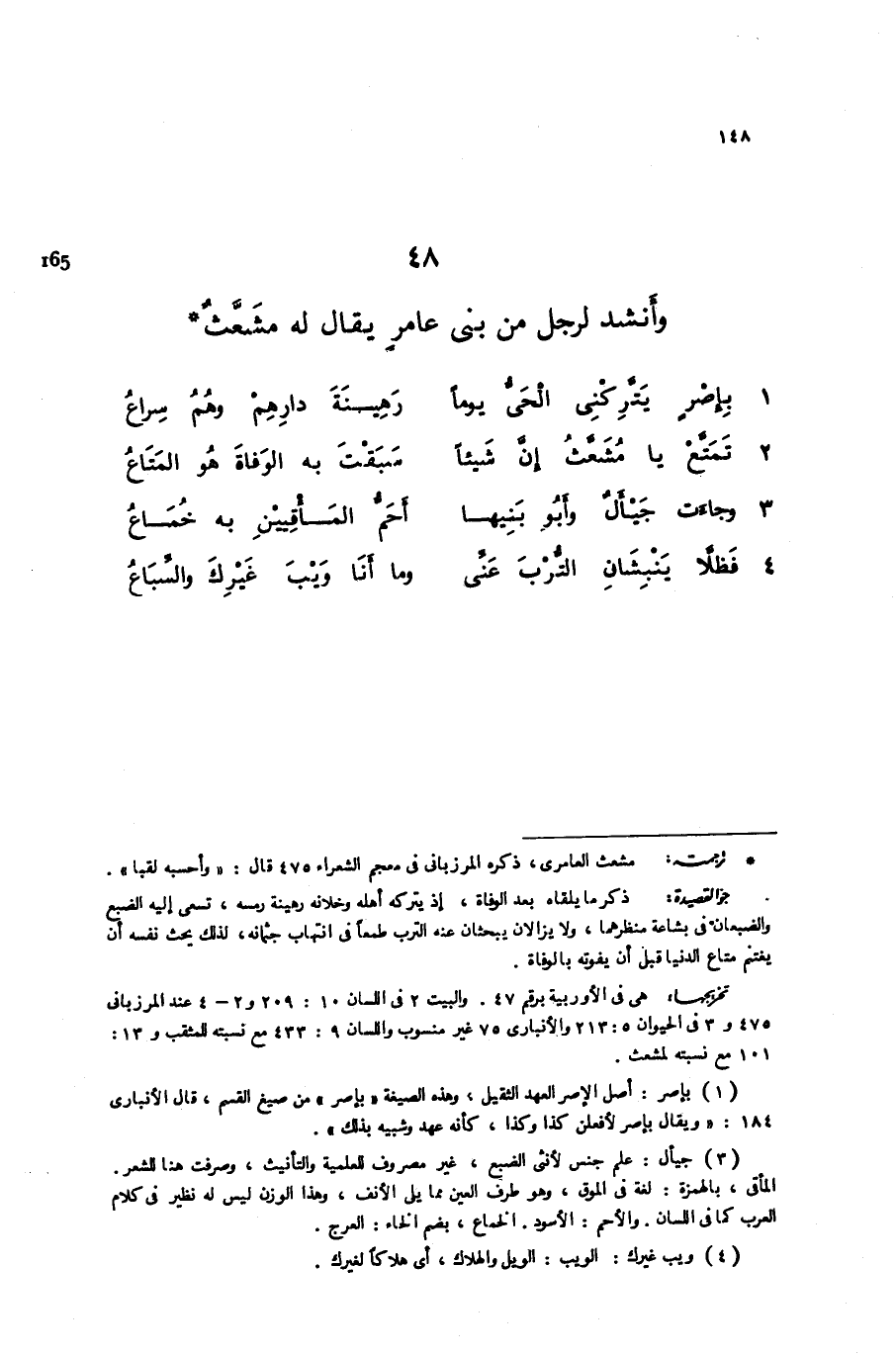 48 - وَأنْشد لرجل من بني عَامر يُقَال لَهُ مشعث 1