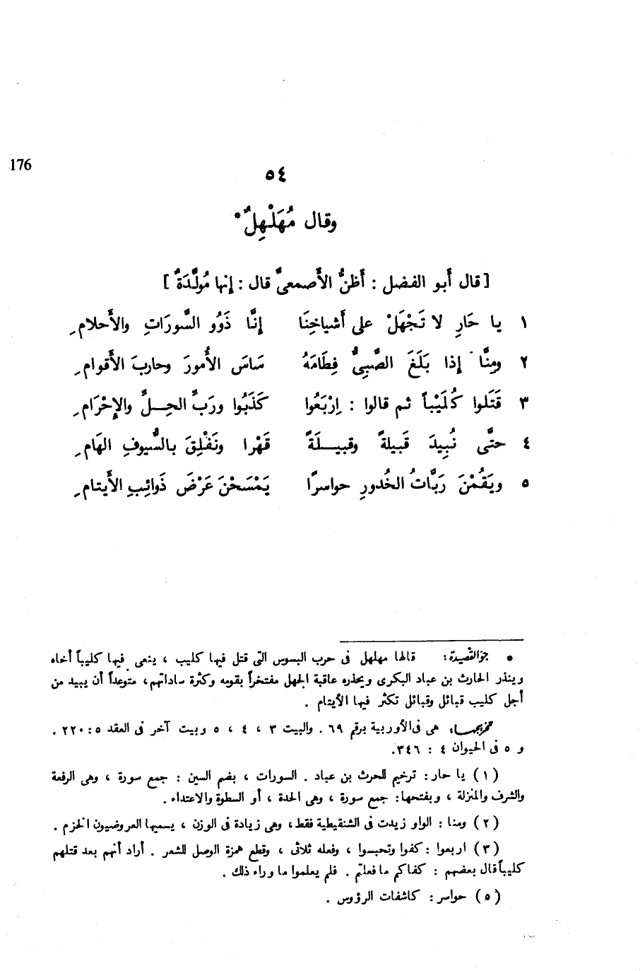 (يَا حارِ لَا تجهلْ على أشياخِنَا ... إنَّا ذَوُو السورات والأحلام)