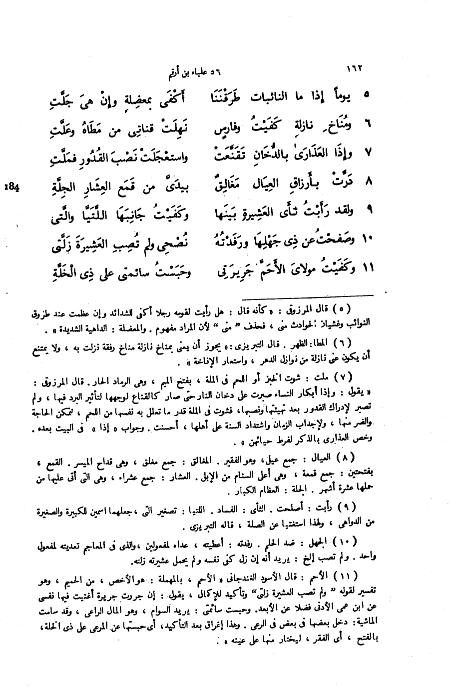 11 - (وكفيت ملاى الأحَمَّ جريرَتي ... وحبَسْتُ سائِمَتي عَلى ذِي الخَلَّةِ)