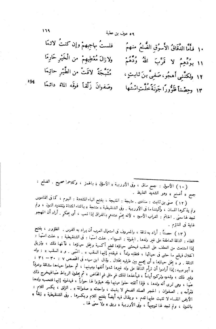 10 - (فَأَما الدقاق الأسوق الضُلْعُ منْهُمُ ... فلسْتُ بهاجيهِمْ وإنْ كنتُ لَائِمَا)