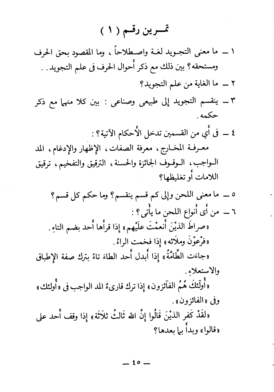 1 ما معنى التجويد لغة واصطلاحًا، وما المقصود بحق الحرف ومستحقه؟ بين ذلك مع ذكر أحوال الحرف في علم التجويد.