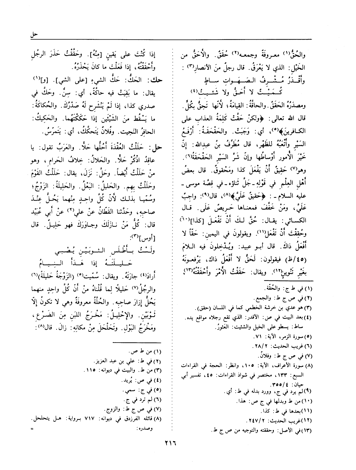 قال بعض أهل العلم في قوله - جل ثناؤه - في قصة موسى - عليه السلام -: {حَقِيقٌ عَلَى} ، قال: واجب