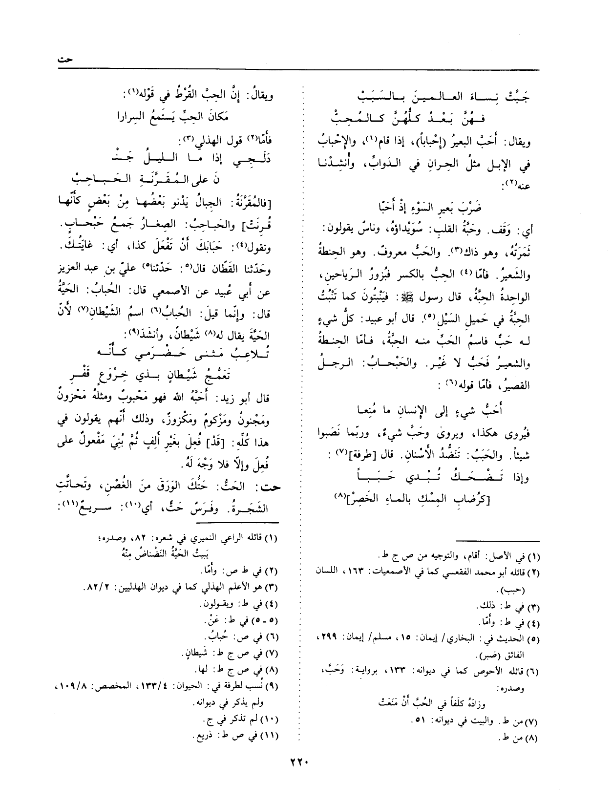 فيروى هكذا، ويروى وحبَّ شيء، وربما تصبوا شيئاً.