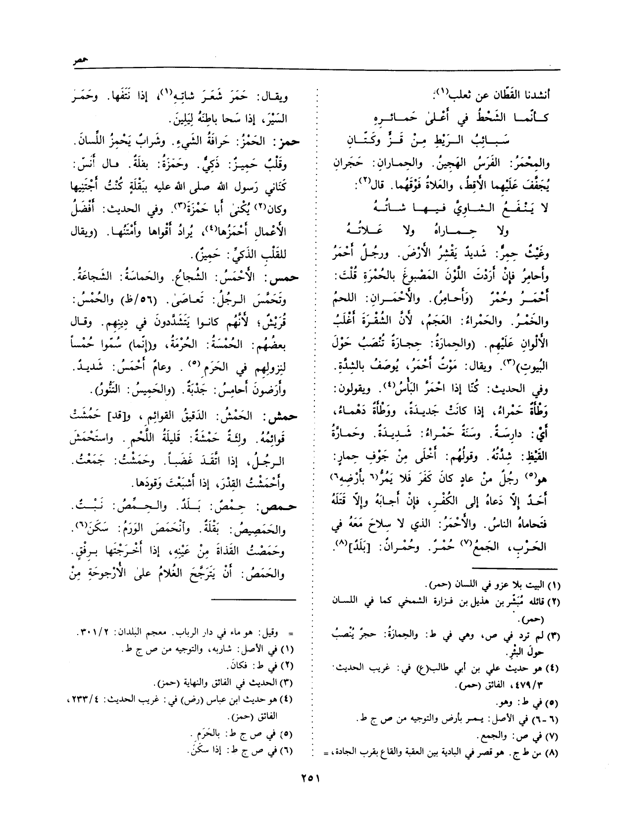 وتحمس الرجل: تعاصى، والحمسُ: قريش؛ لأنهم كانوا يتشددون في دينهم.