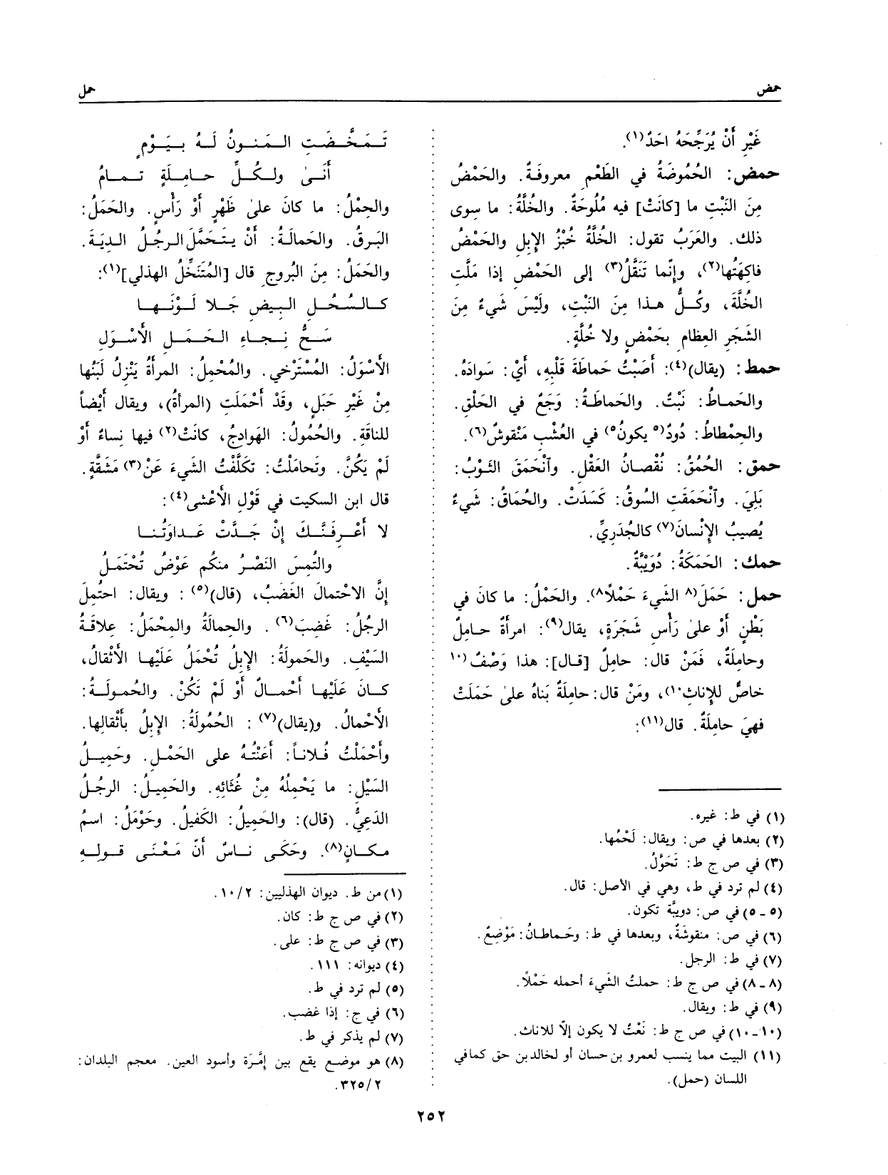 والعرب تقول: الخلة خبز الإبل والحمض فاكهتها، وإنما تنقل إلى الحمضِ إذا ملت. الخلة، وكل هذا من النبت، وليس شيء من الشجر العظام بحمض ولا خلةٍ.