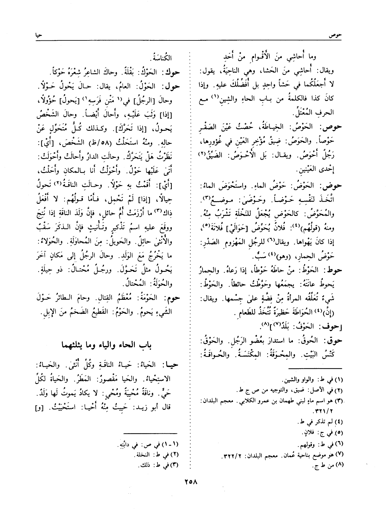ومنة (قولهم) : فلان يحوض [حوالي] فلانة، إذا كان يهواها.