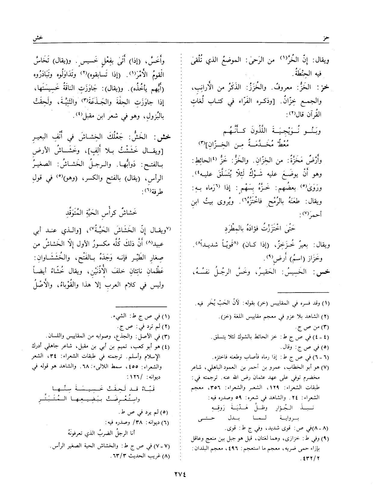 خش: الخشُّ: جعلك الخشاش في أنف البعير [ويقال خششت بلا ألف] ، وخشاش الأرض بالفتح: دوأبُّها.