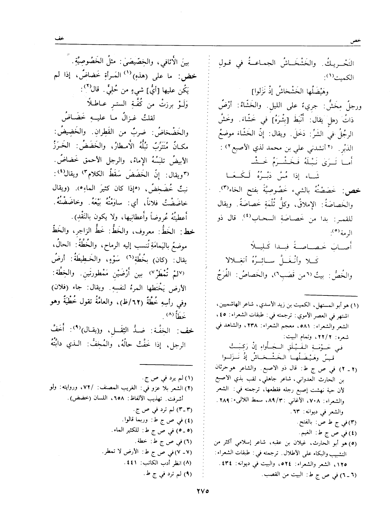 ويقال: إن الخضض سقط الكلام ويقال: نبت خضخضٌ، إذا كان كثير الماء.