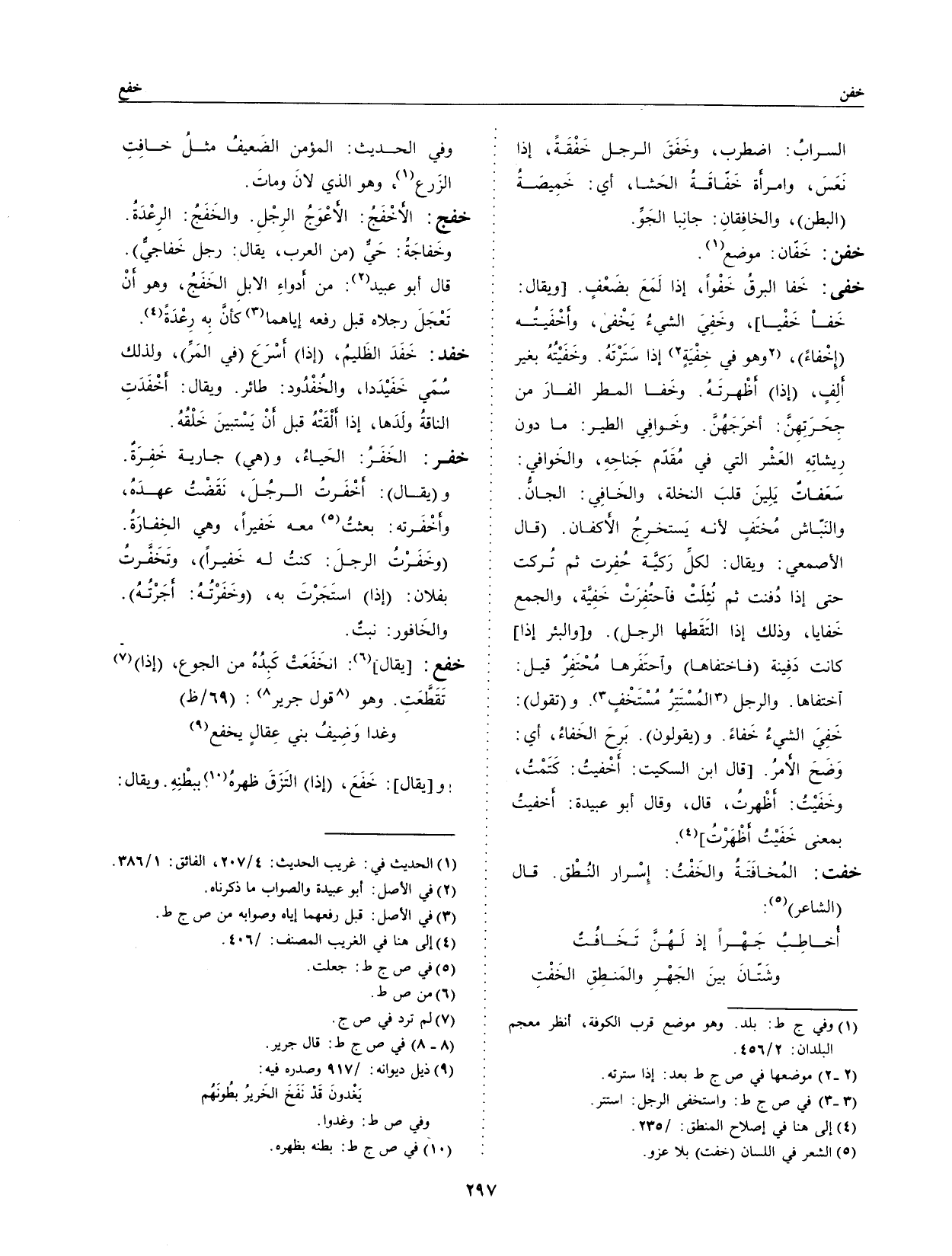 قال أبو عبيد: من أدواءِ الإبل الخفجُ، وهو أن تعجل رجلاه قبل رفعه إياهما كأن به رعدة.