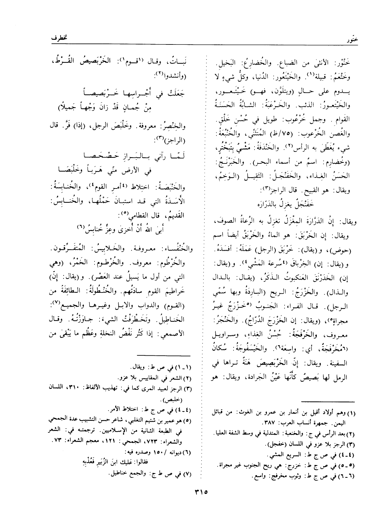 والغصن الخرعوب: المتثني، والخنبُعة: شيء يغطى به الرأس.