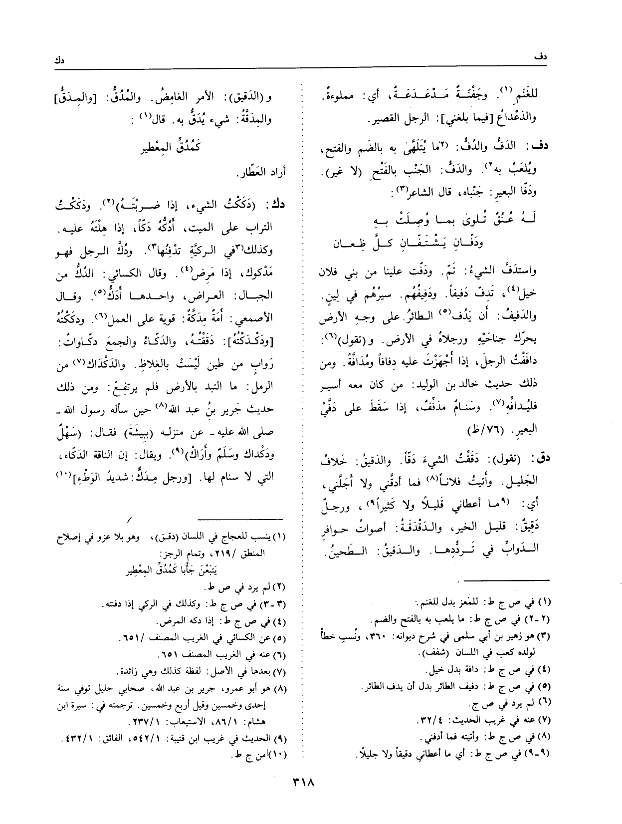 و (تقول) : داففتُ الرجل، إذا أجهزت عليه دفافاً ومدافة.