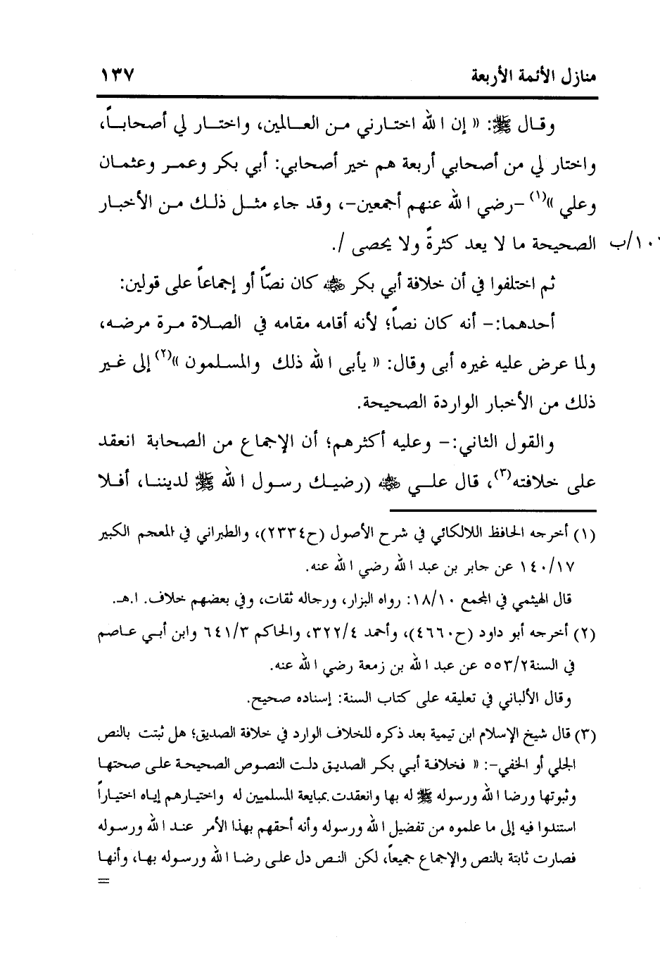 كتاب منازل الأئمة الأربعة أبي حنيفة ومالك والشافعي وأحمد