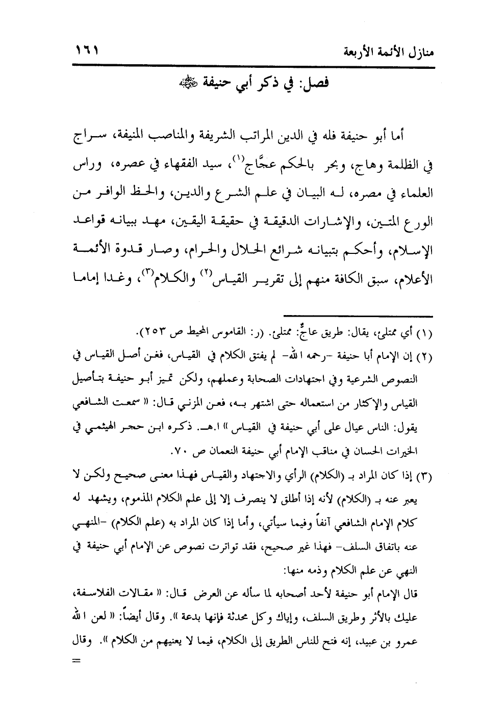 كتاب منازل الأئمة الأربعة أبي حنيفة ومالك والشافعي وأحمد