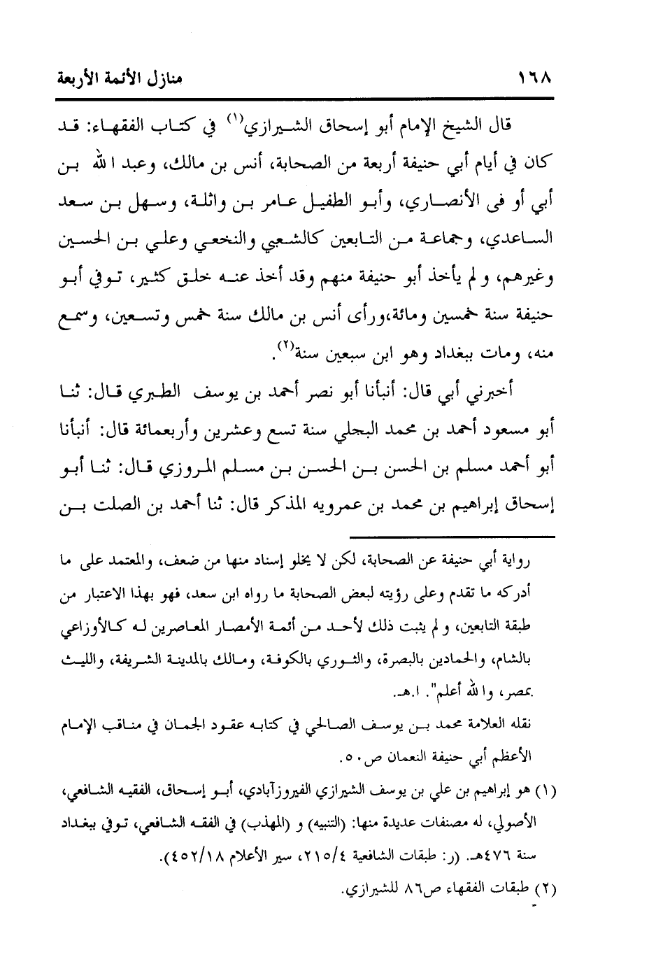 كتاب منازل الأئمة الأربعة أبي حنيفة ومالك والشافعي وأحمد