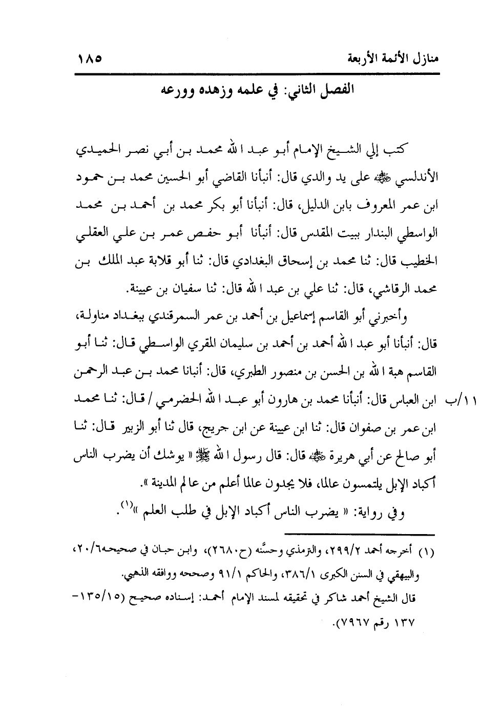 كتاب منازل الأئمة الأربعة أبي حنيفة ومالك والشافعي وأحمد