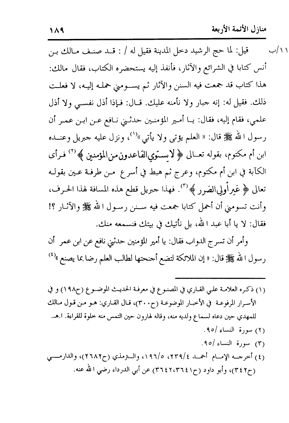 كتاب منازل الأئمة الأربعة أبي حنيفة ومالك والشافعي وأحمد
