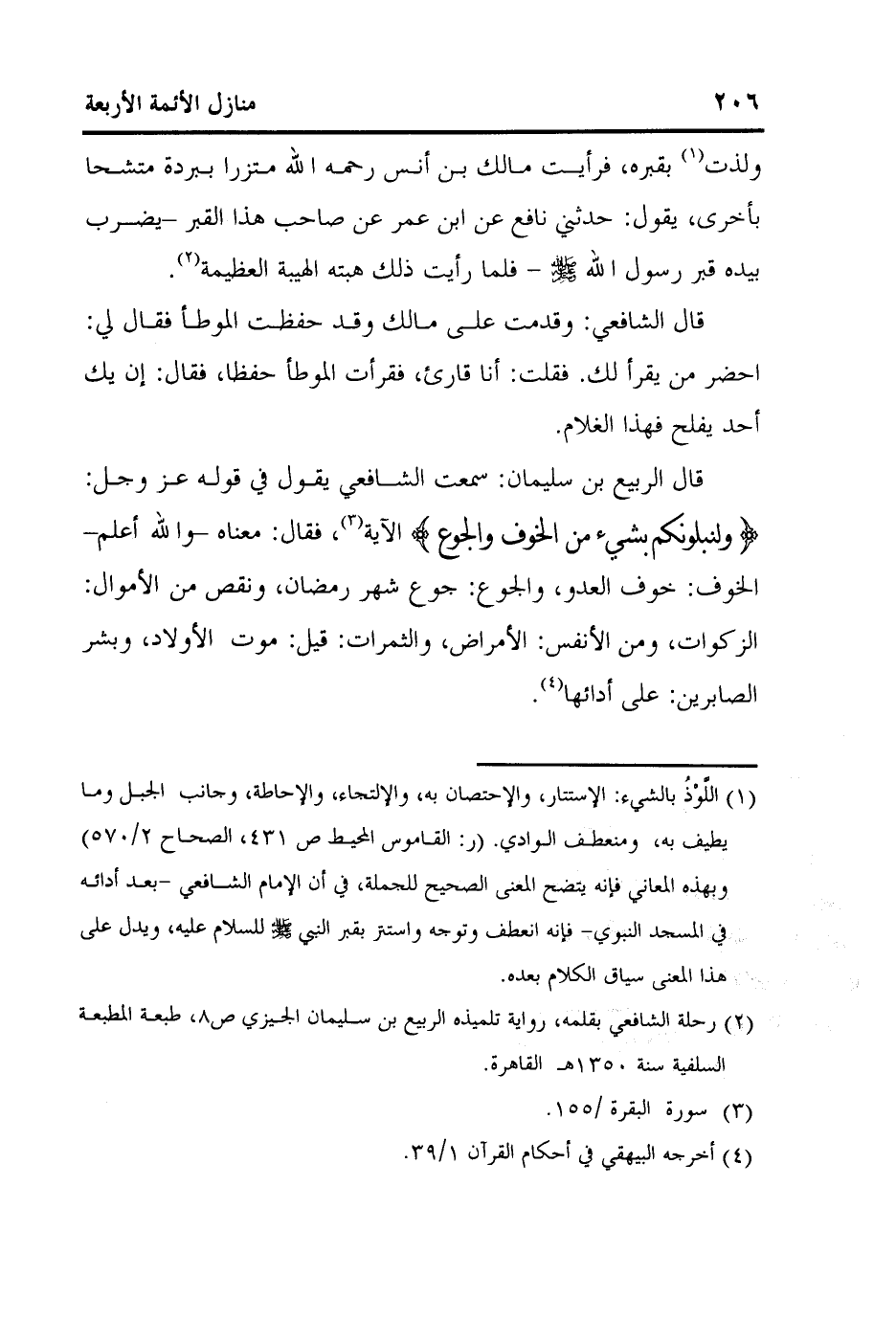 كتاب منازل الأئمة الأربعة أبي حنيفة ومالك والشافعي وأحمد
