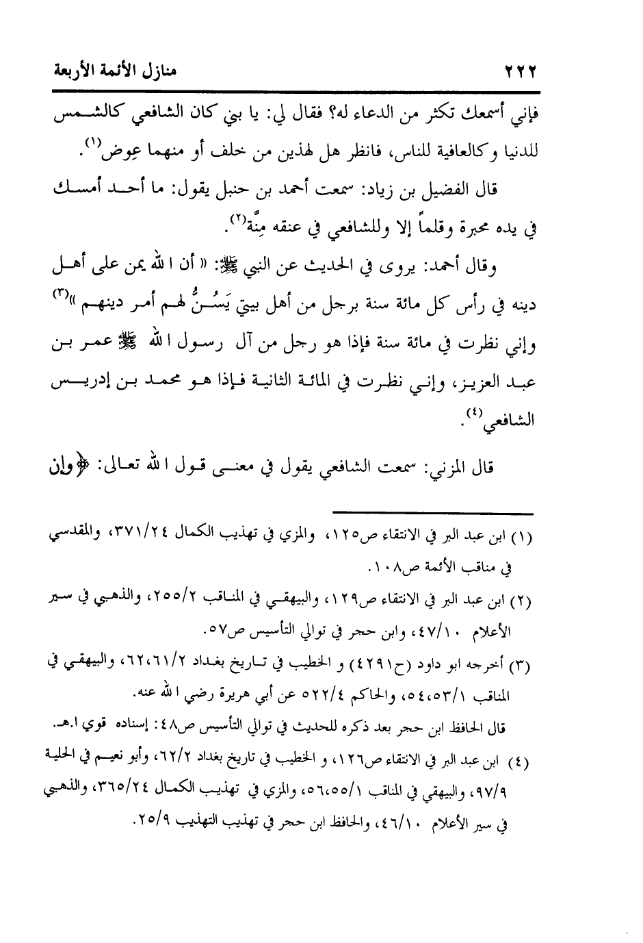 كتاب منازل الأئمة الأربعة أبي حنيفة ومالك والشافعي وأحمد