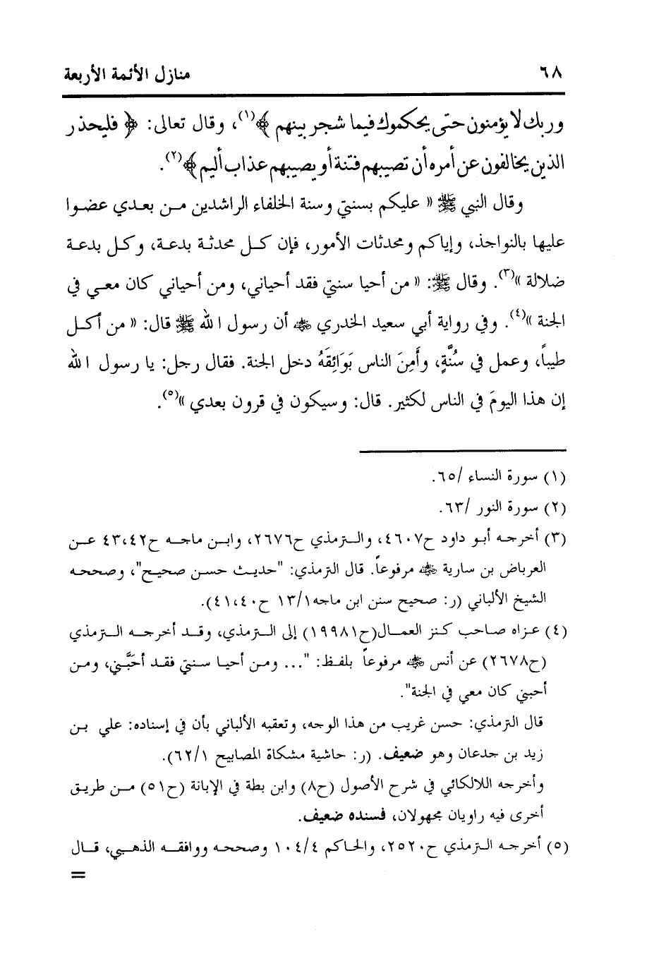 3 أخرجه أبو داود ح4607، والترمذي ح2676، وابن ماجه ح42،43 عن العرباض بن سارية رضي الله عنه مرفوعاً. قال الترمذي: "حديث حسن صحيح"، وصححه الشيخ الألباني (ر: صحيح سنن ابن ماجه1/13 ح40،41) .