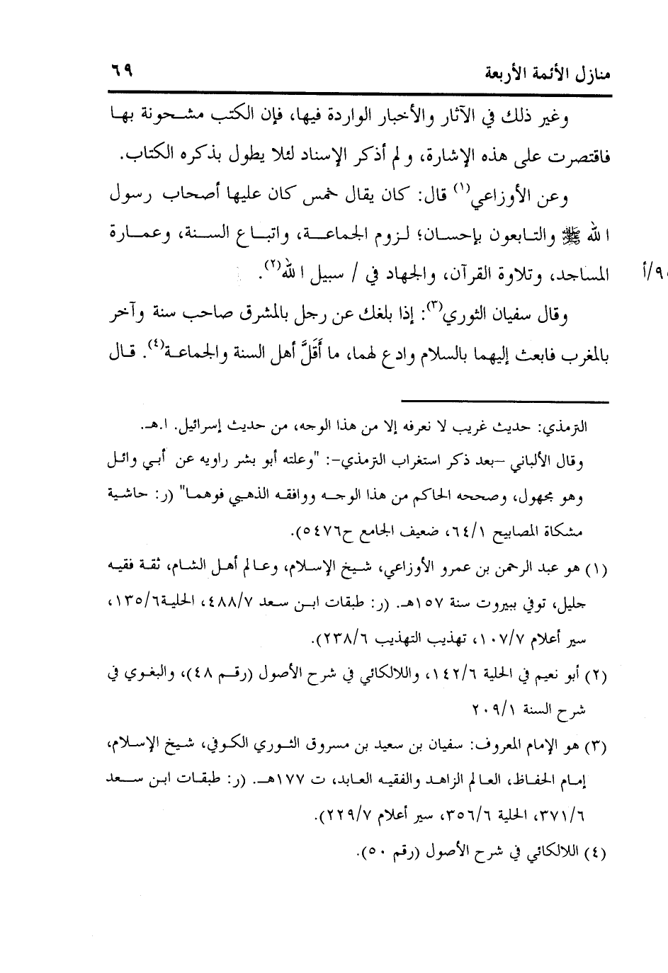 1 هو عبد الرحمن بن عمرو الأوزاعي، شيخ الإسلام، وعالم أهل الشام، ثقة فقيه جليل، توفي ببيروت سنة 157هـ. (ر: طبقات ابن سعد 7/488، الحلية6/135، سير أعلام 7/107، تهذيب التهذيب 6/238) .