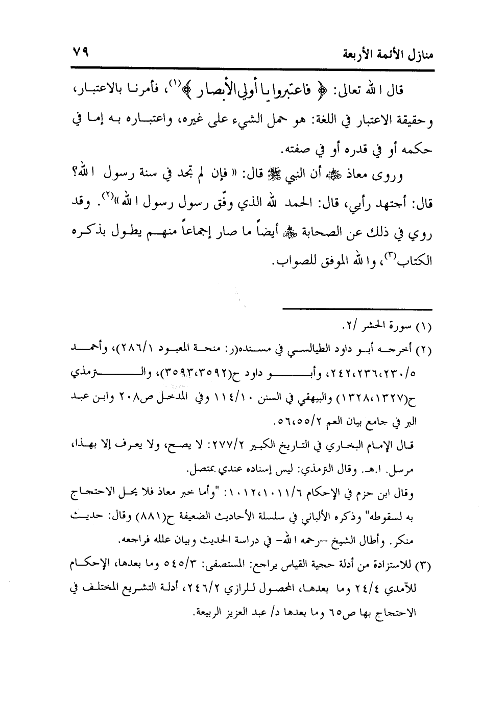 3 للاستزادة من أدلة حجية القياس يراجع: المستصفى: 3/545 وما بعدها، الإحكام للآمدي 4/24 وما بعدها، المحصول للرازي 2/246، أدلة التشريع المختلف في الاحتجاج بها ص65 وما بعدها د/ عبد العزيز الربيعة.