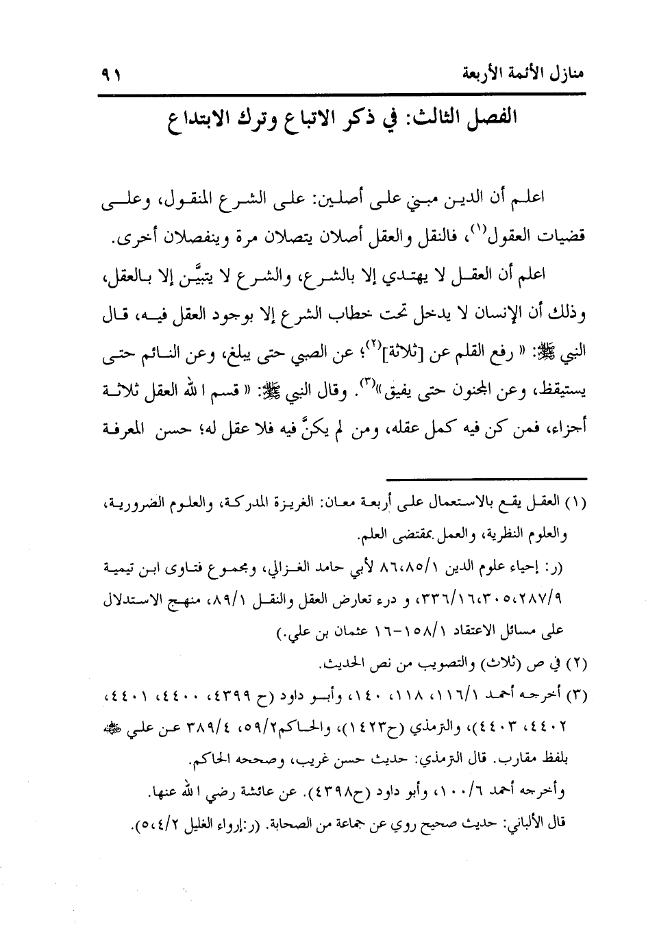 كتاب منازل الأئمة الأربعة أبي حنيفة ومالك والشافعي وأحمد