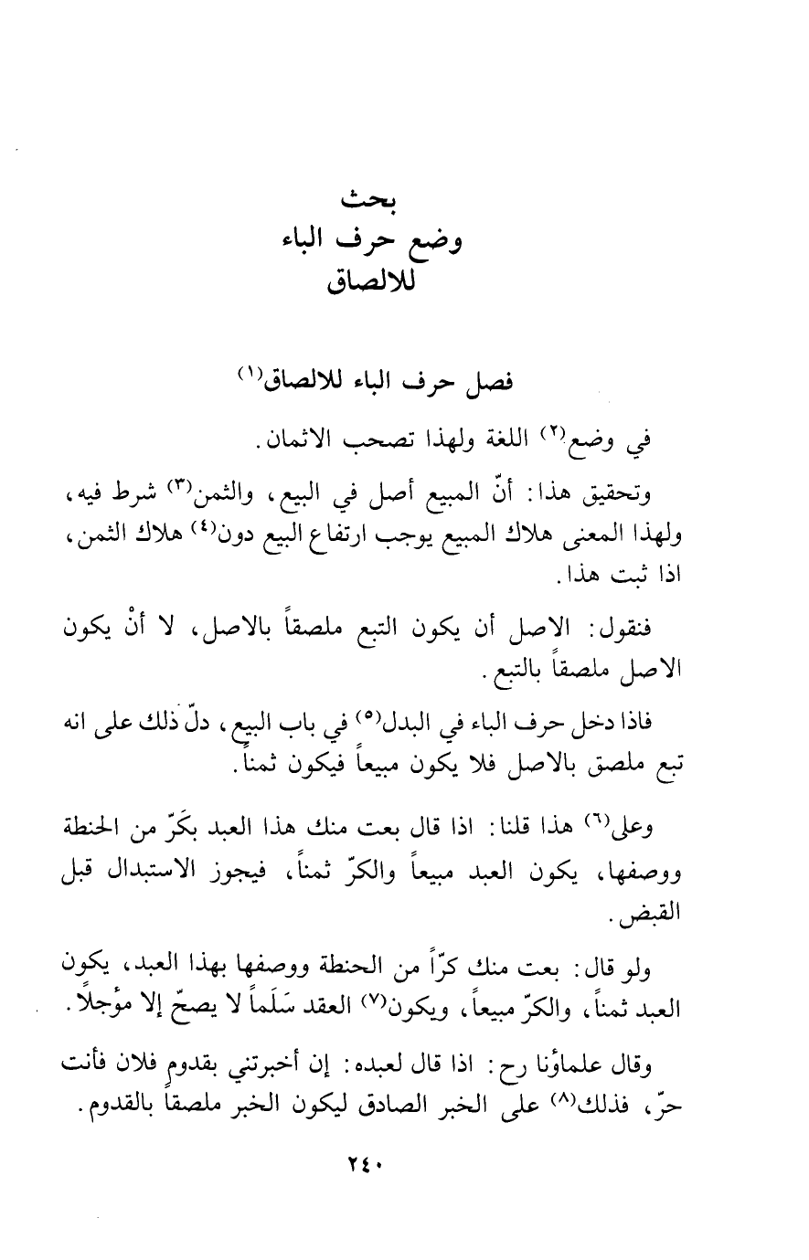فصل حرف الْبَاء للإلصاق فِي وضع اللُّغَة وَلِهَذَا تصْحَب الْأَثْمَان