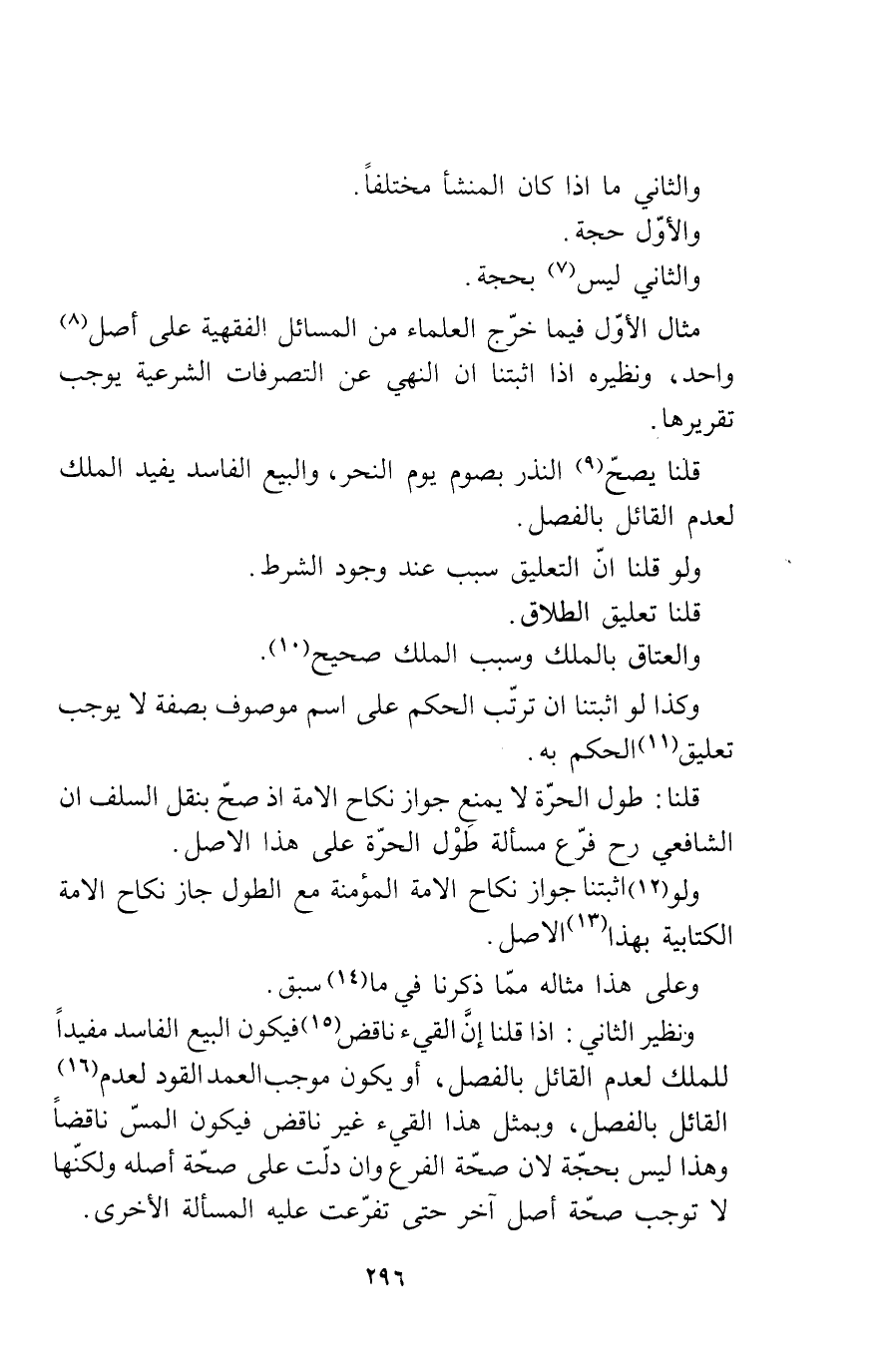 وَنَظِير الثَّانِي إِذا قُلْنَا إِن الْقَيْء نَاقض فَيكون البيع الْفَاسِد مُفِيدا للْملك لعدم الْقَائِل بِالْفَصْلِ أَو يكون مُوجب الْعمد الْقود لعدم الْقَائِل بِالْفَصْلِ وبمثل هَذَا الْقَيْء غير نَاقض فَيكون الْمس ناقضا وهذاليس بِحجَّة لِأَن صِحَة الْفَرْع وَإِن دلّت على صِحَة اصله وَلكنهَا لَا توجب صِحَة أصل آخر حَتَّى تفرعت عَلَيْهِ الْمَسْأَلَة الْأُخْرَى