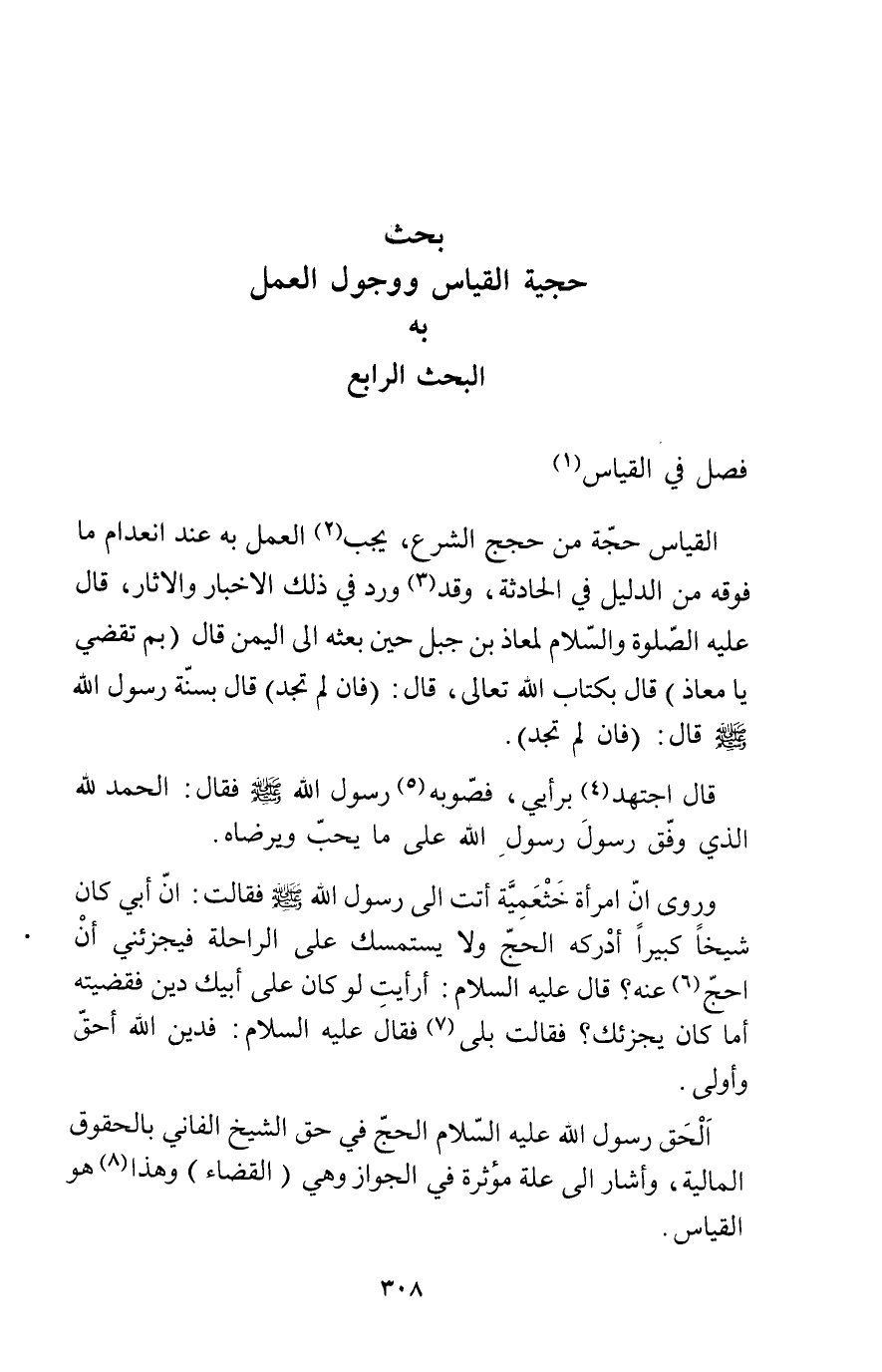 بحث حجية الْقيَاس ووجول الْعَمَل بِهِ