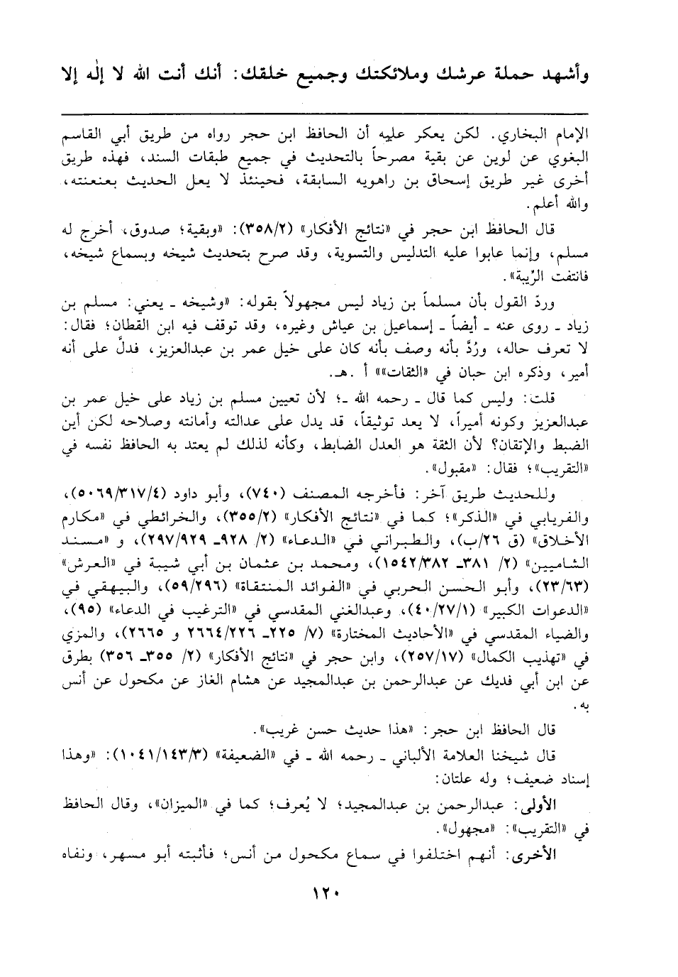 وردّ القول بأن مسلمًا بن زياد ليس مجهولًا بقوله: "وشيخه -يعني: مسلم بن زياد- روى عنه -أيضًا- إسماعيل بن عياش وغيره، وقد توقف فيه ابن القطان؛ فقال: لا تعرف حاله، ورُدَّ بأنه وصف بأنه كان على خيل عمر بن عبد العزيز، فدلَّ على أنه أمير، وذكره ابن حبان في "الثقات"" أ. هـ.