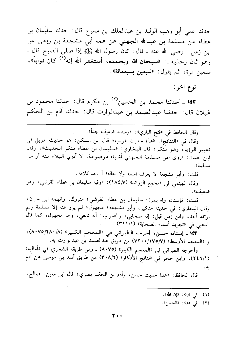 143 - حدثنا محمد بن الحسين (¬2) بن مكرم قال: حدثنا محمود بن غيلان قال: حدثنا عبد الصمد بن عبد الوارث قال: حدثنا آدم بن الحكم