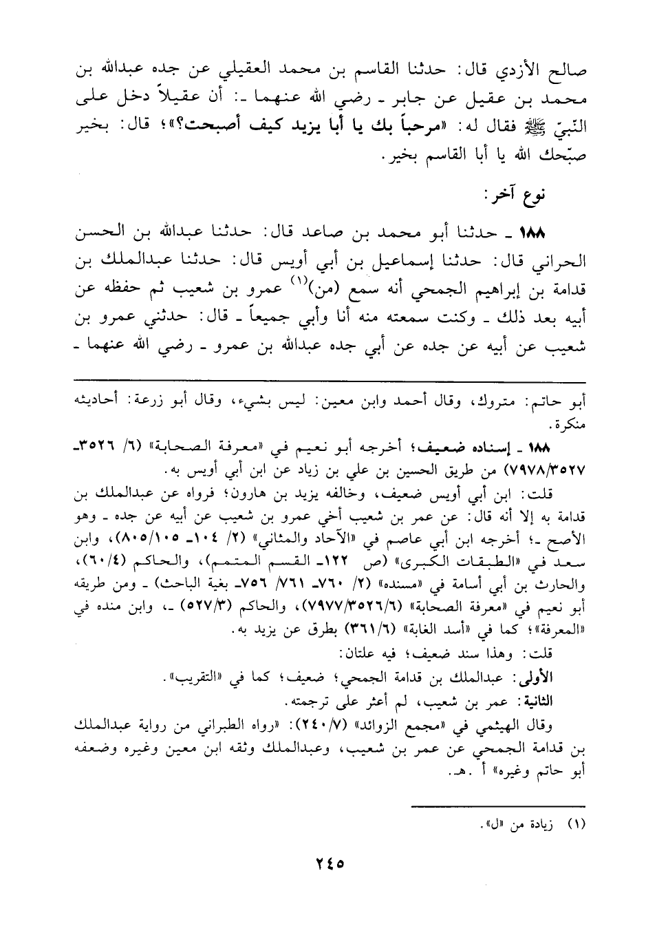 الثانية: عمر بن شعيب، لم أعثر على ترجمته.