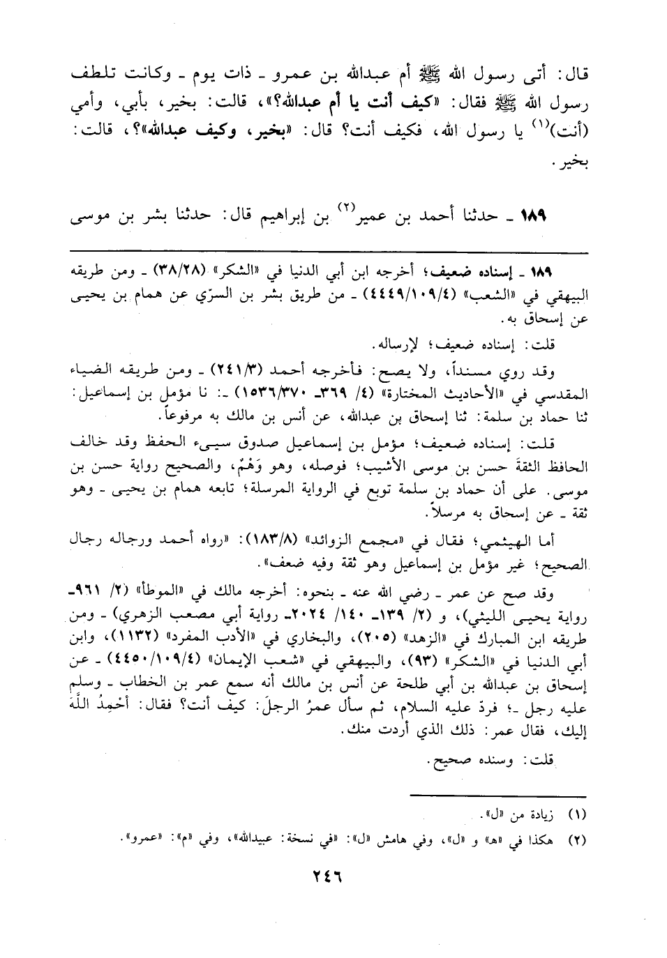 189 - حدثنا أحمد بن عمير (¬2) بن إبراهيم قال: حدثنا بشر بن موسى
