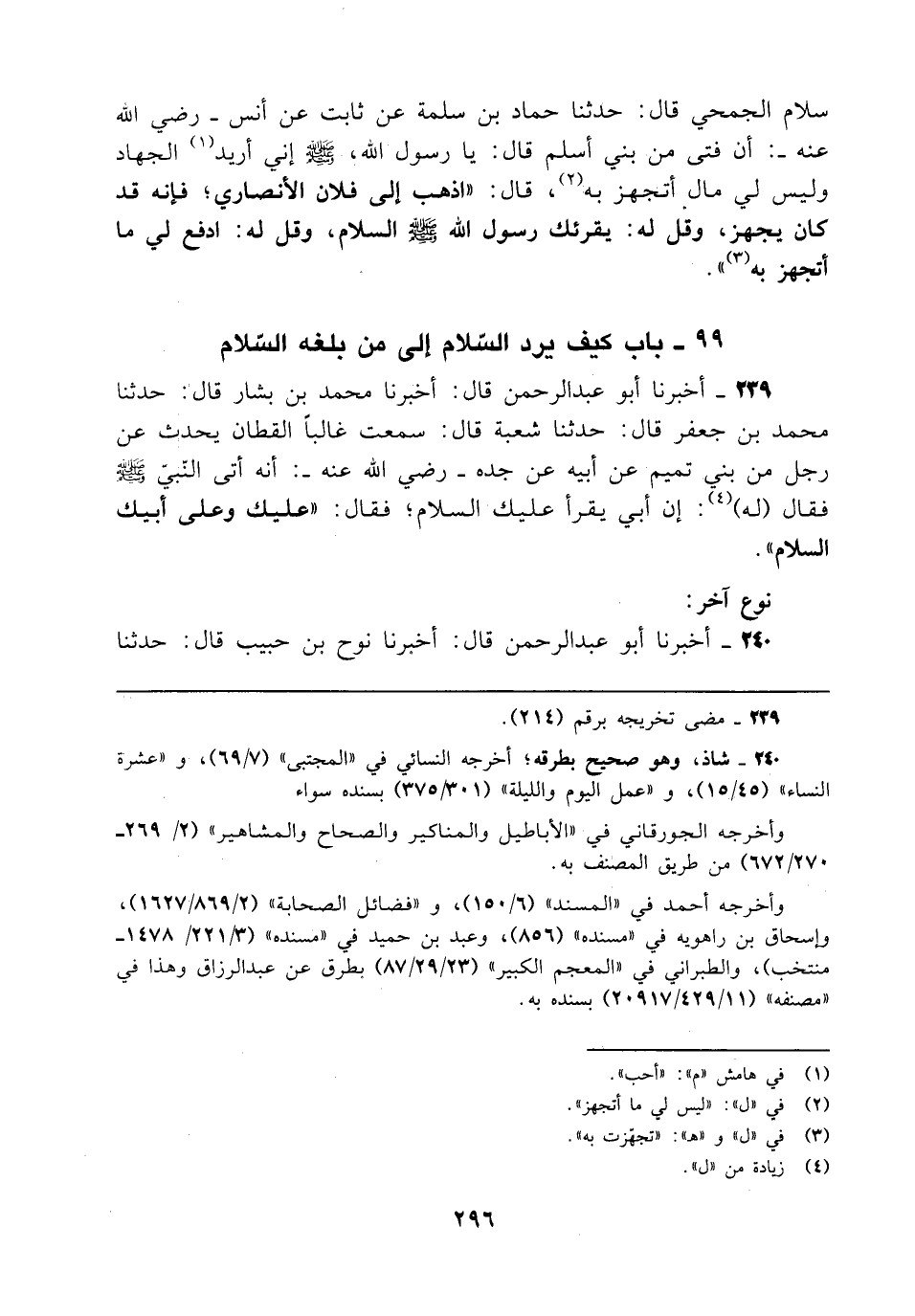 99 - باب كيف يرد السّلام إلى من بلغه السّلام