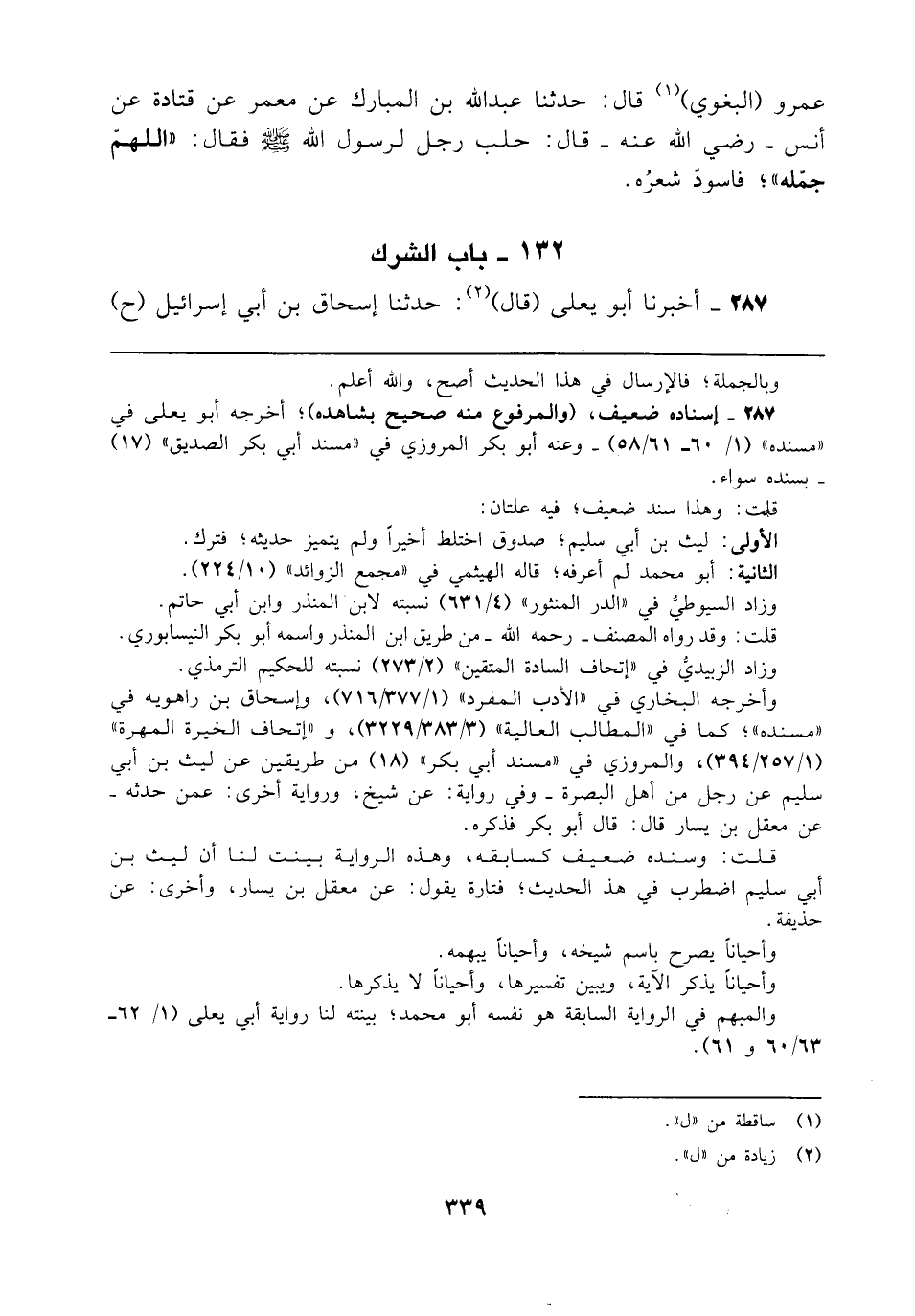 287 - أخبرنا أبو يعلى (قال) (¬2): حدثنا إسحاق بن أبي إسرائيل (ح)