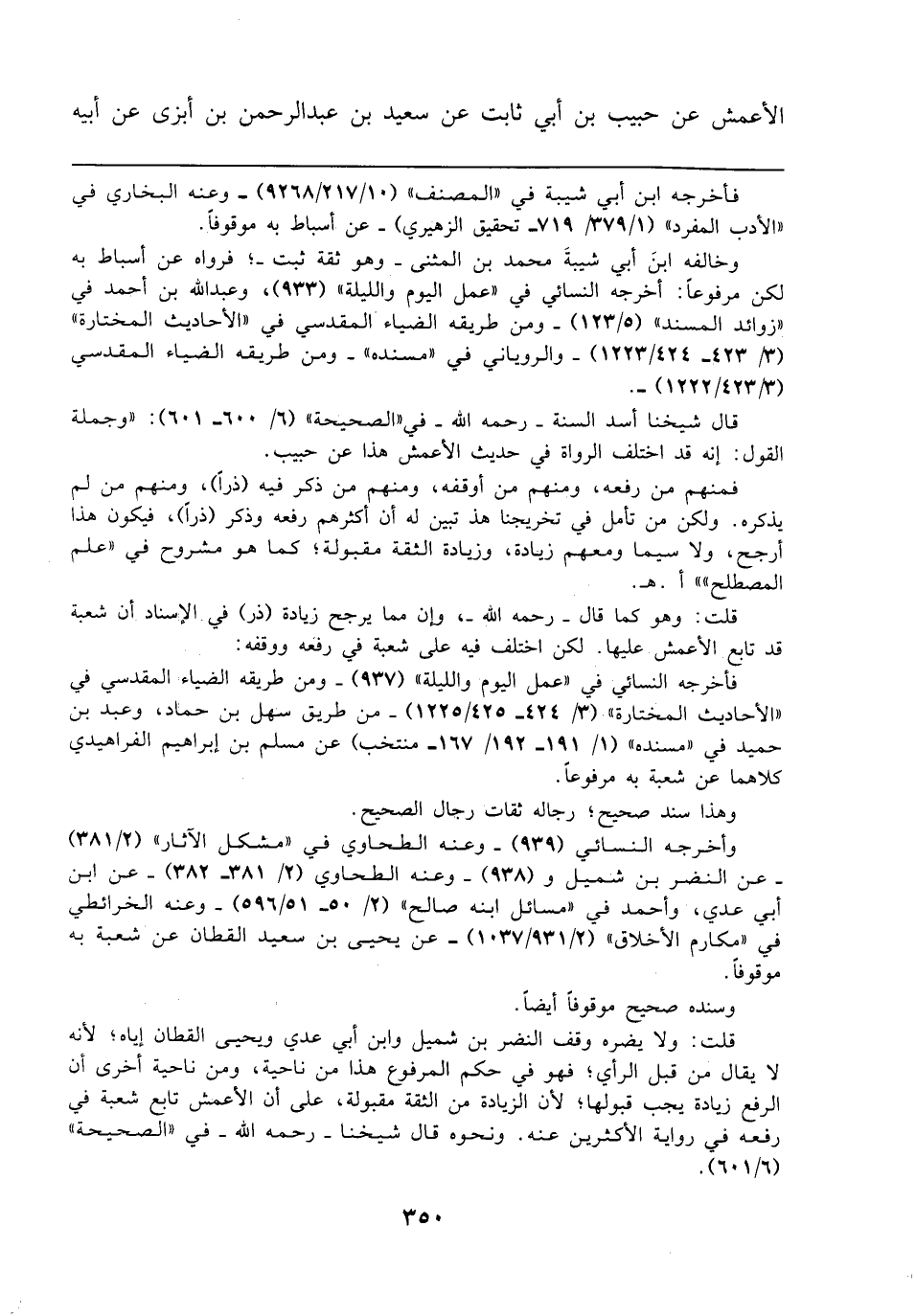 قال شيخنا أسد السنة - رحمه الله - في "الصحيحة" (6/ 600 - 601): "وجملة القول: إنه قد اختلف الرواة في حديث الأعمش هذا عن حبيب.