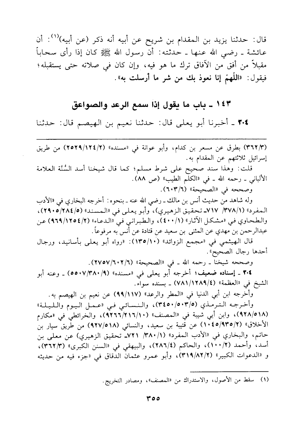 143 - باب ما يقول إذا سمع الرعد والصواعق