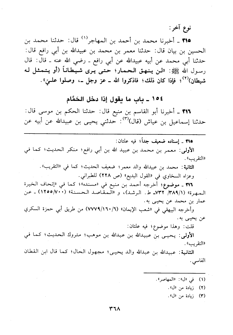 315 - إسناده ضعيف جدًا؛ فيه علتان: