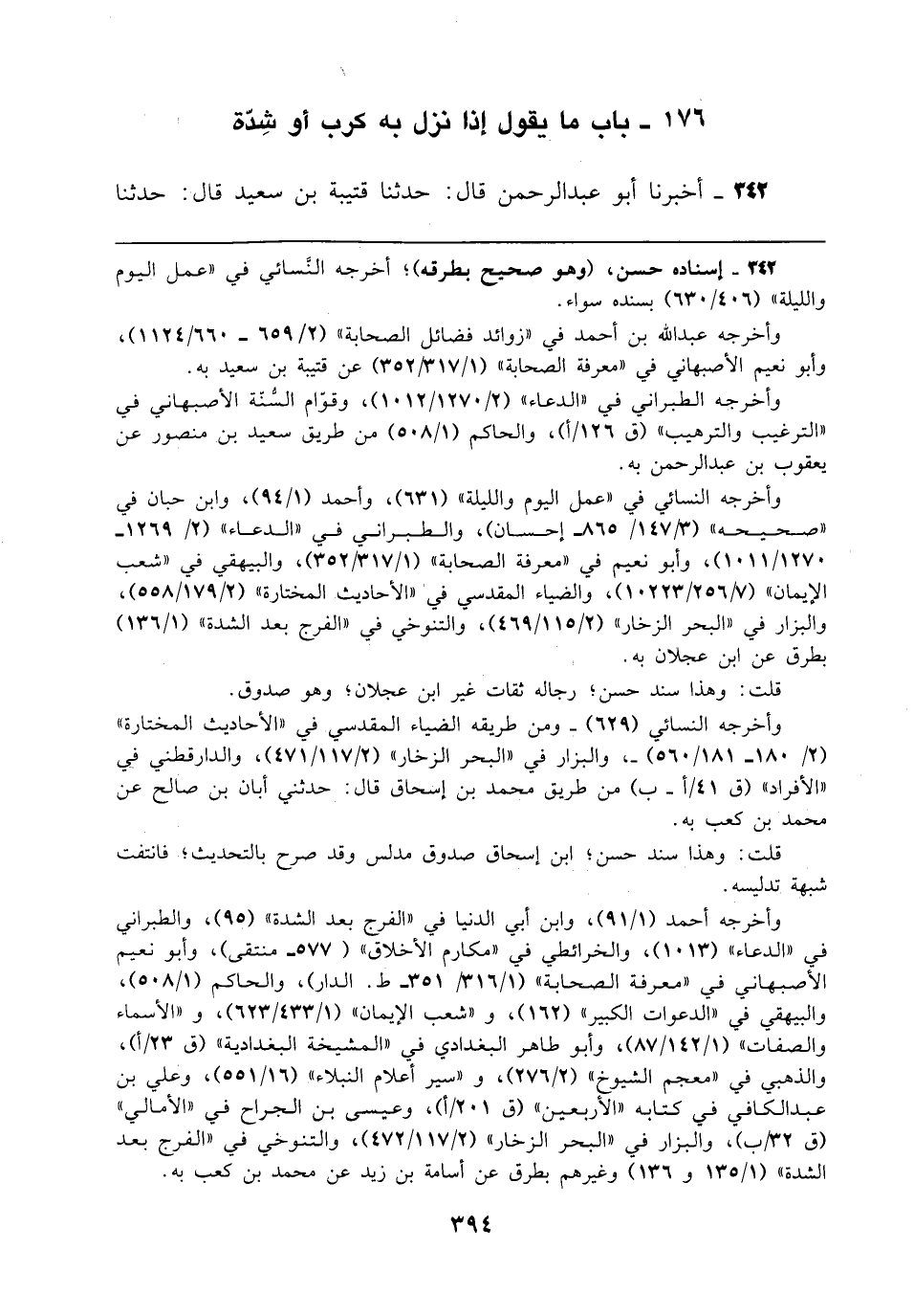 176 - باب ما يقول إذا نزل به كرب أو شِدّة