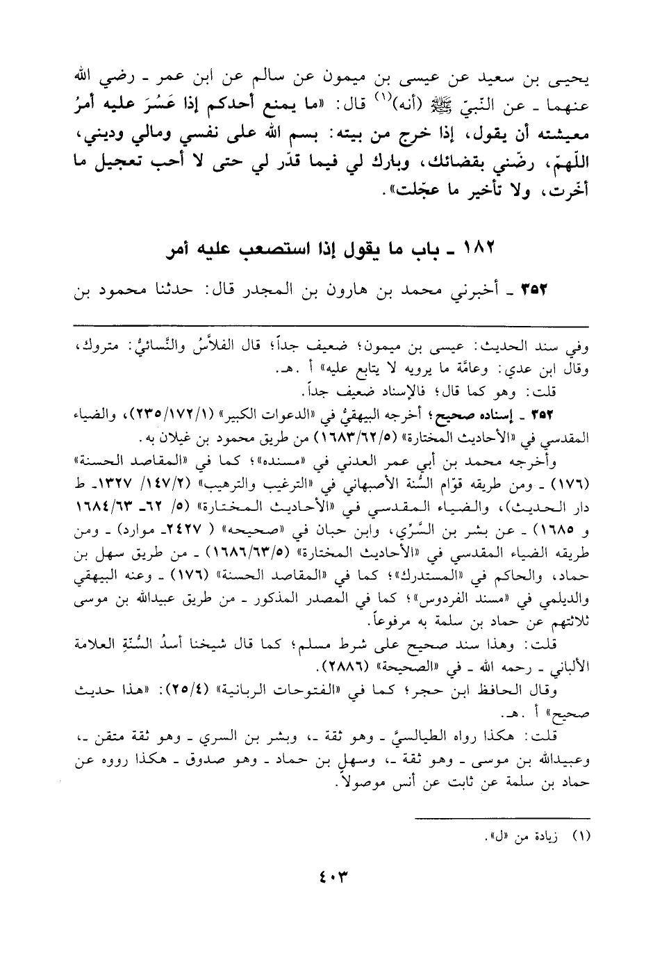 352 - إسناده صحيح؛ أخرجه البيهقي في "الدعوات الكبير" (1/ 172/ 235)، والضياء المقدسي في "الأحاديث المختارة" (5/ 62/ 1683) من طريق محمود بن غيلان به.