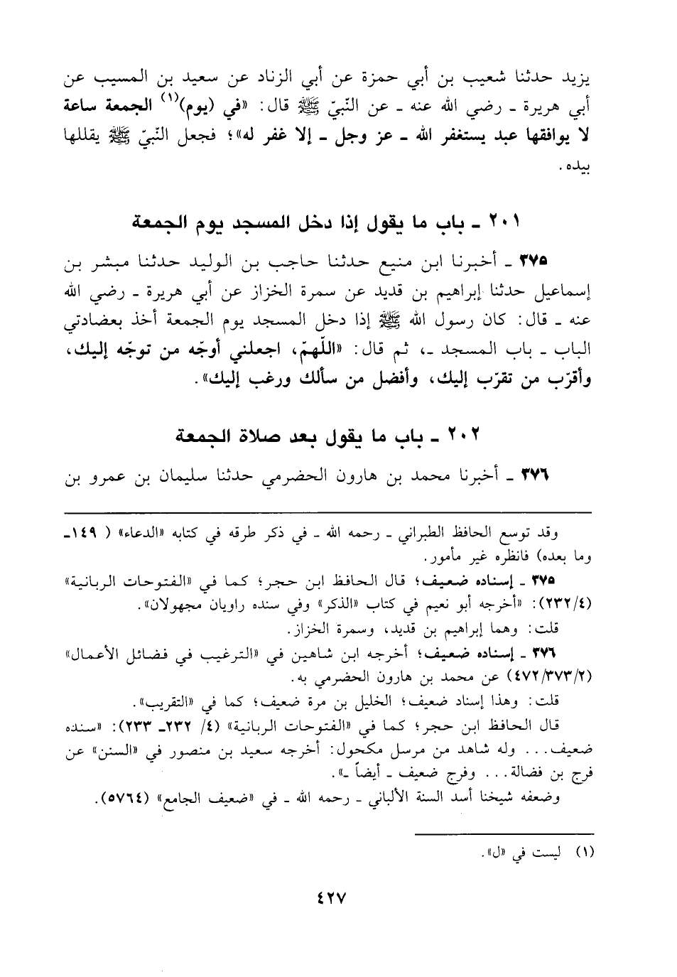 201 - باب ما يقول إذا دخل المسجد يوم الجمعة