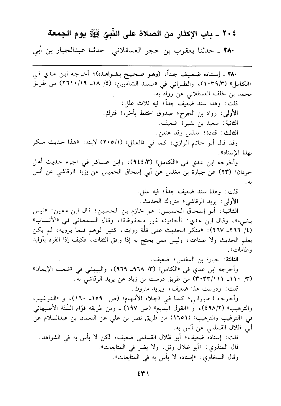 380 - حدثنا يعقوب بن حجر العسقلاني حدثنا عبد الجبار بن أبي